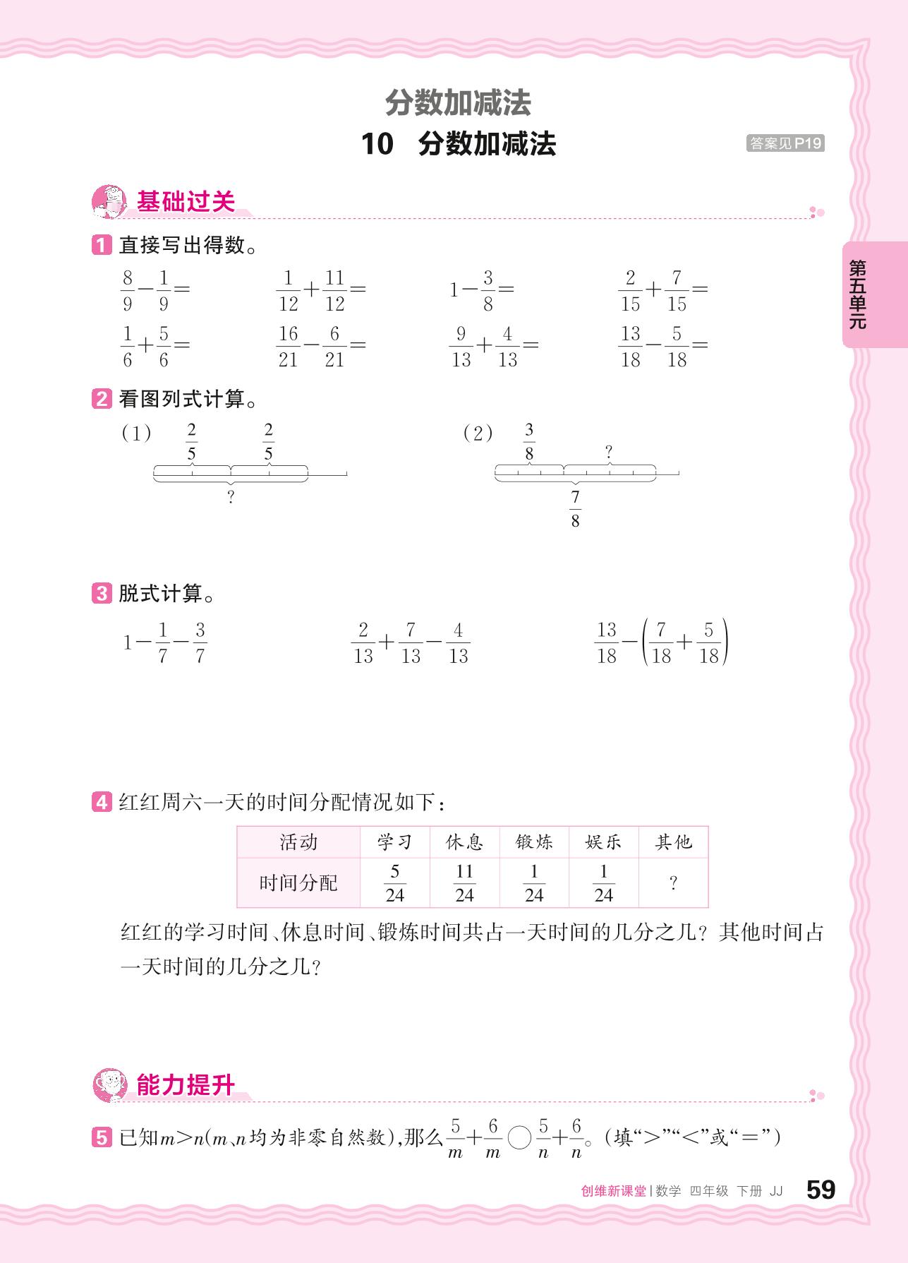 2024春下册四年级数学冀教版 第五单元 分数的意义和性质——10. 分数加减法