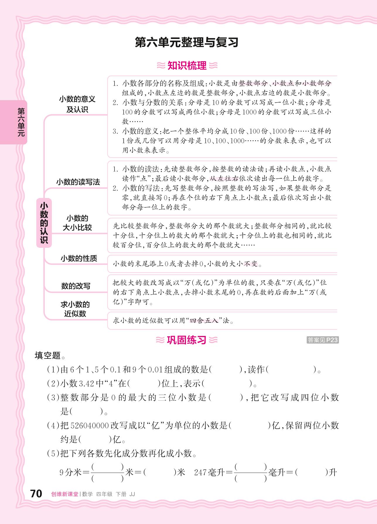 2024春下册四年级数学冀教版 第六单元整理与复习