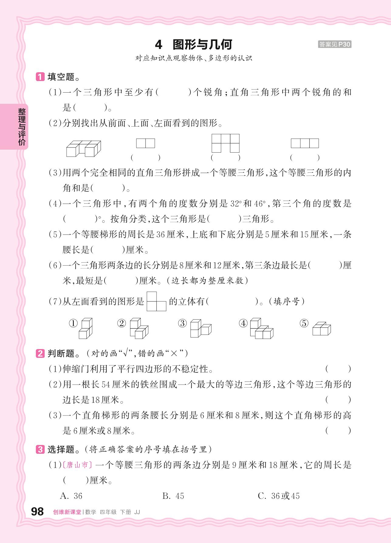 2024春下册四年级数学冀教版 整理与评价——4. 图形与几何