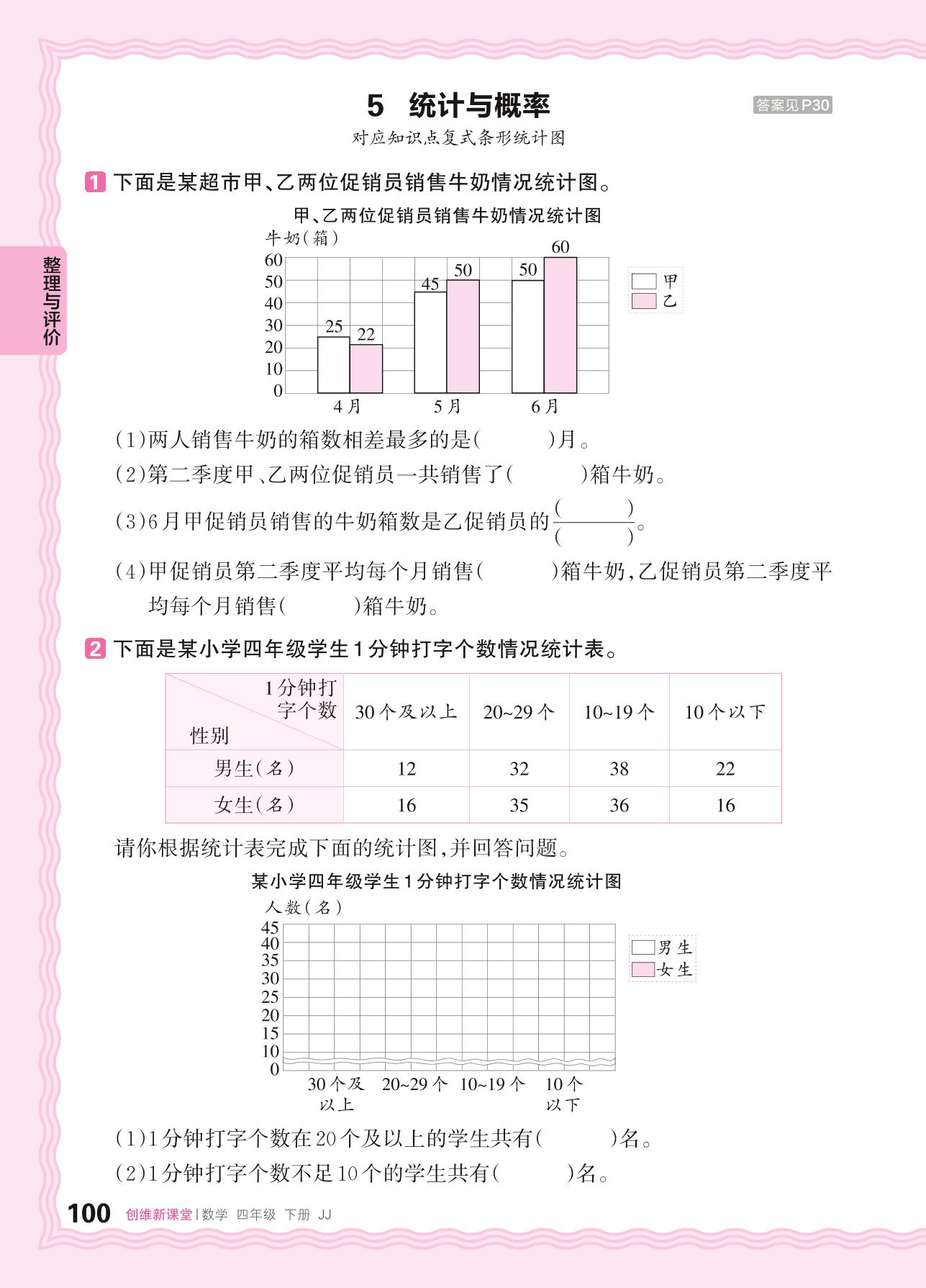 2024春下册四年级数学冀教版 整理与评价——5. 统计与概率