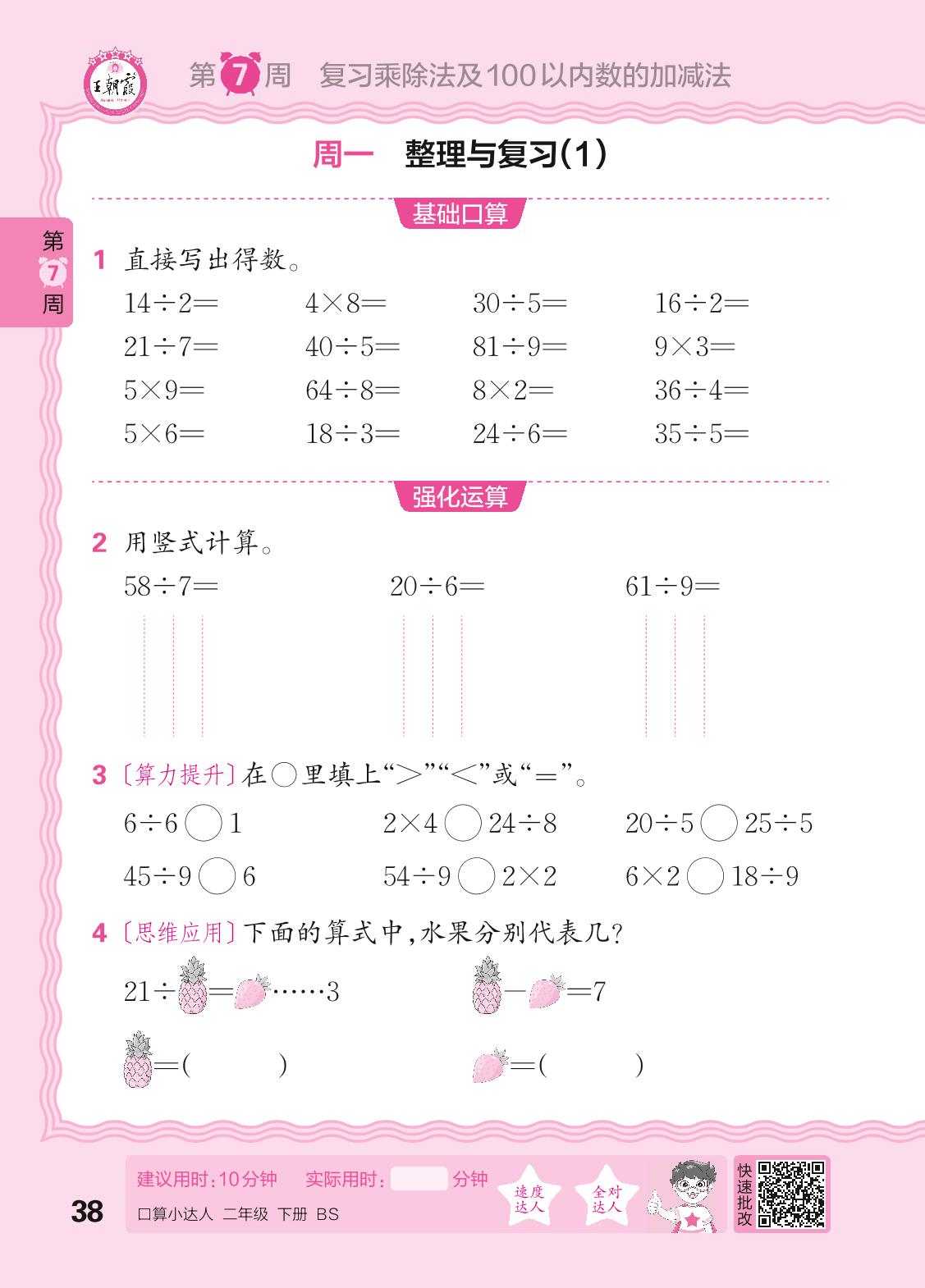 2024春下册二年级数学北师版 口算计算专练 第7周