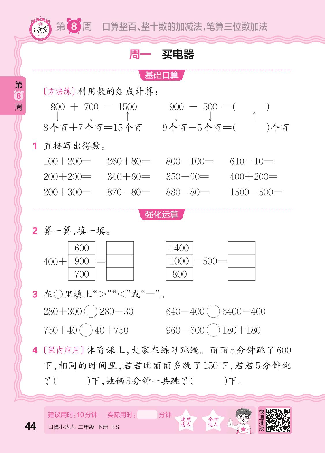 2024春下册二年级数学北师版 口算计算专练 第8周