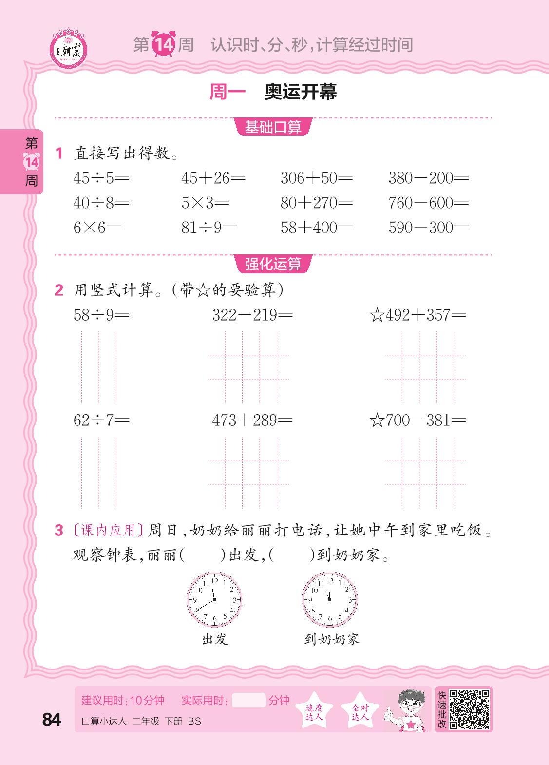 2024春下册二年级数学北师版 口算计算专练 第14周
