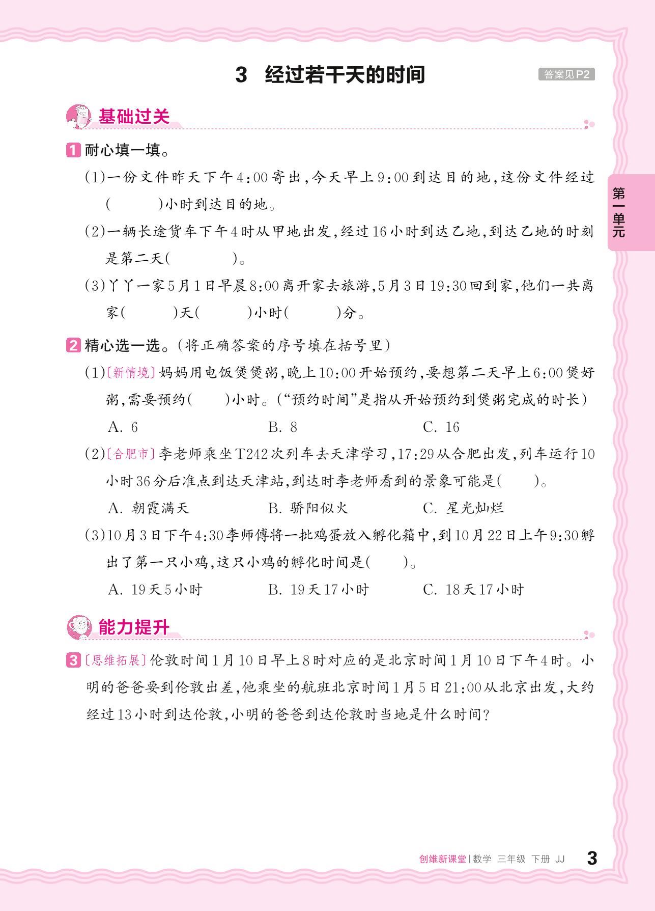 2024春下册三年级数学冀教版 第一单元 年、月、日——3. 经过若干天的时间
