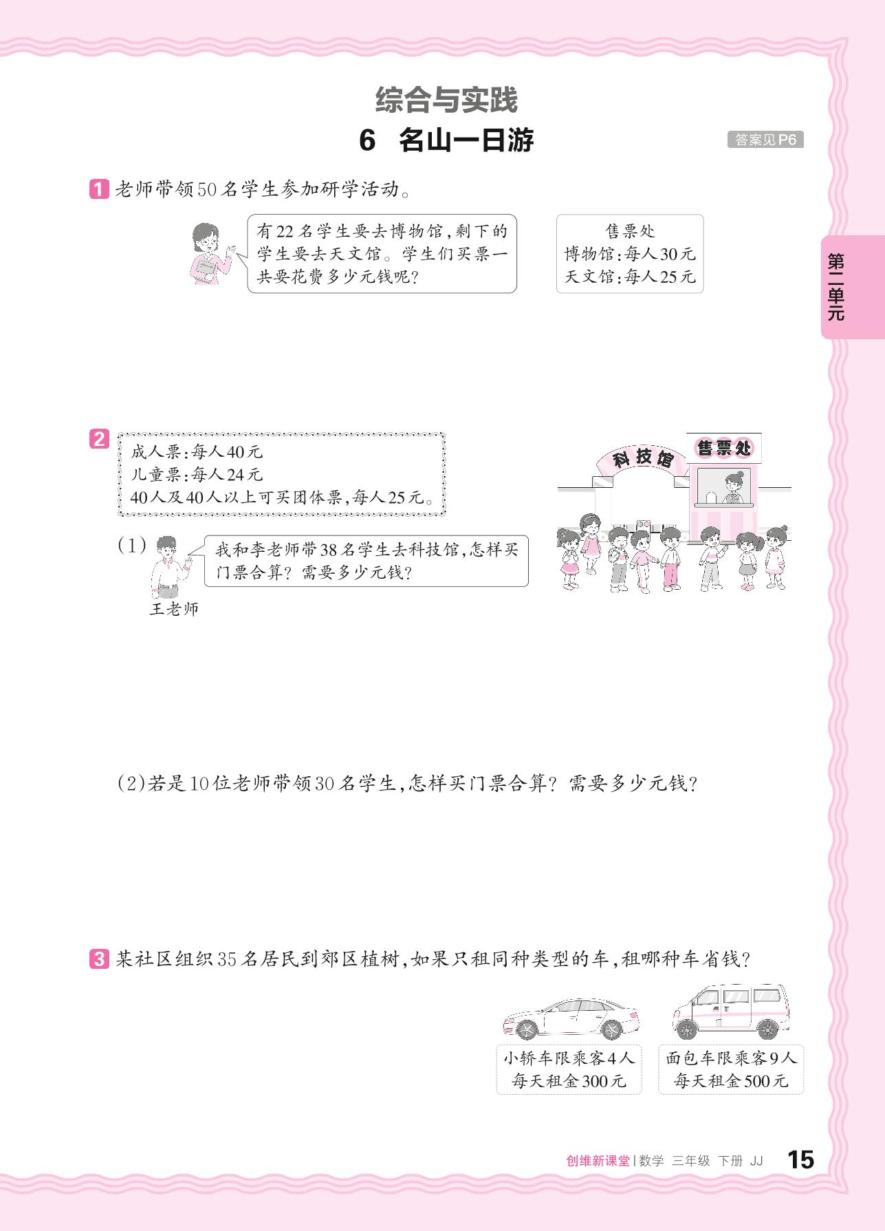 2024春下册三年级数学冀教版 第二单元 两位数乘两位数——6. 名山一日游