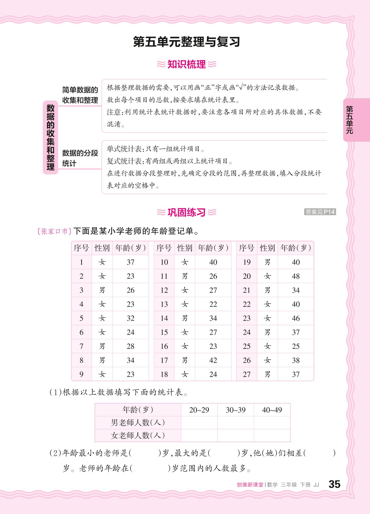 2024春下册三年级数学冀教版 第五单元整理与复习