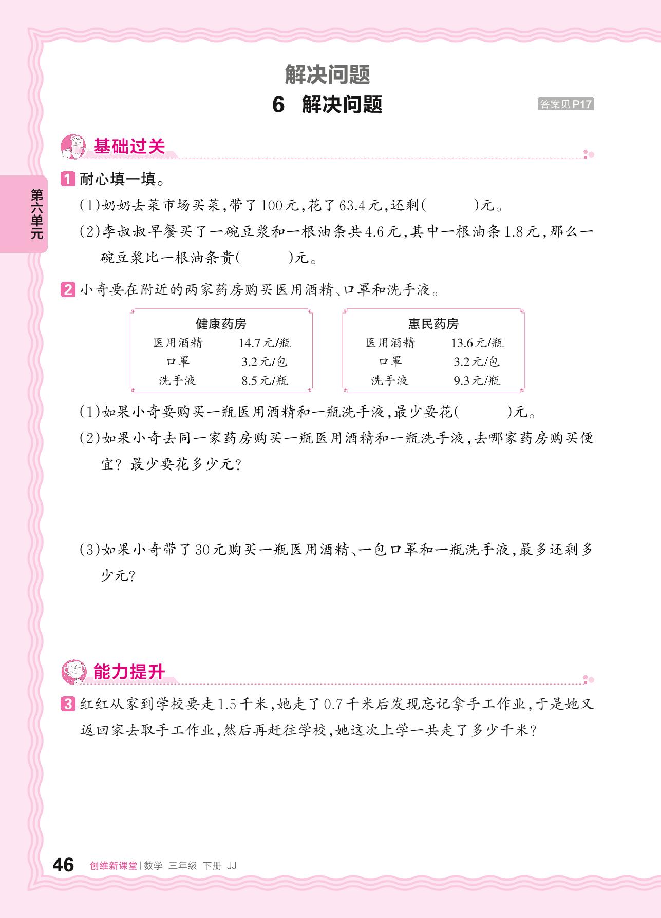 2024春下册三年级数学冀教版 第六单元 小数的初步认识——6. 解决问题