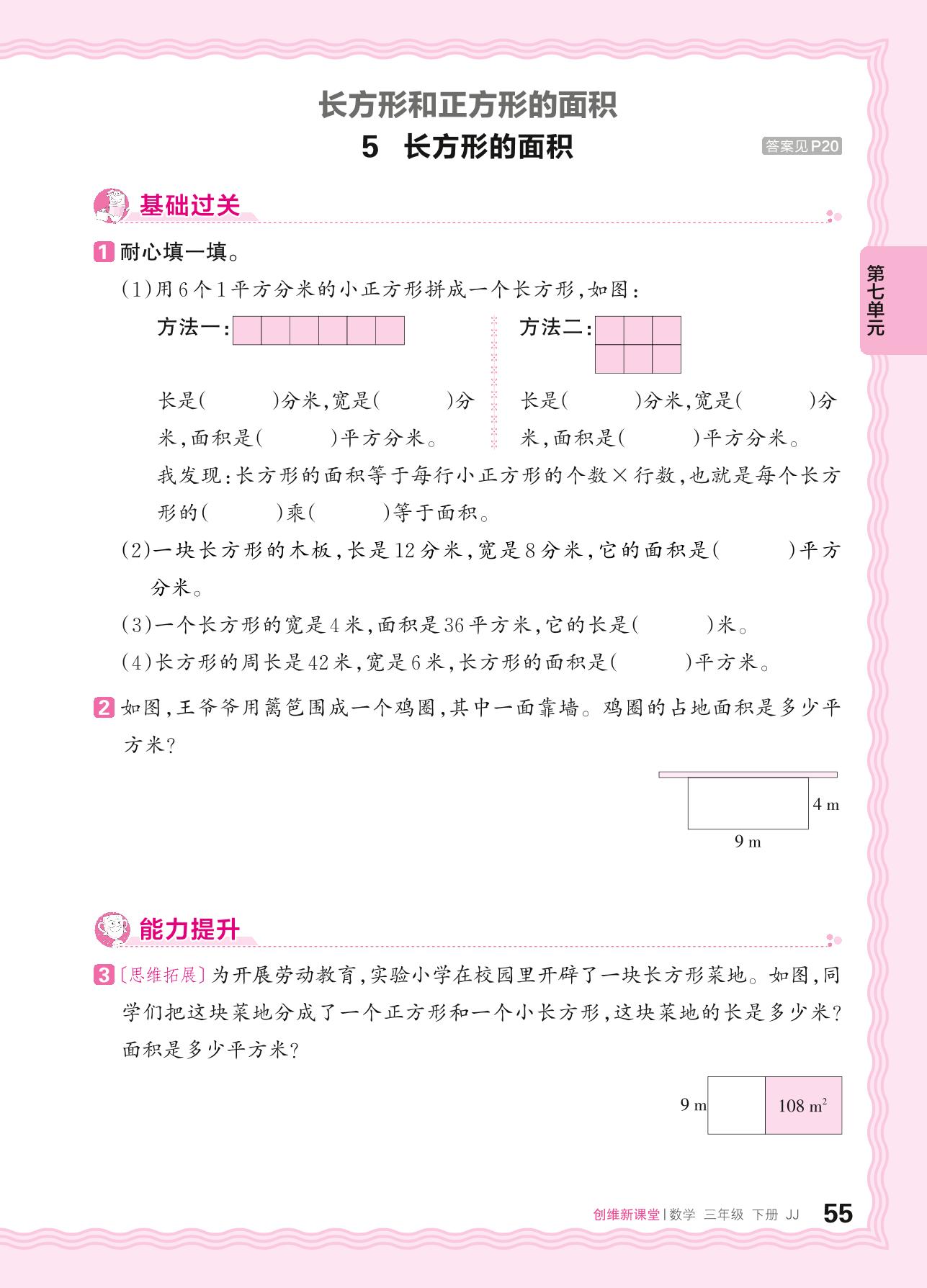 2024春下册三年级数学冀教版 第七单元 长方形和正方形的面积——5. 长方形的面积