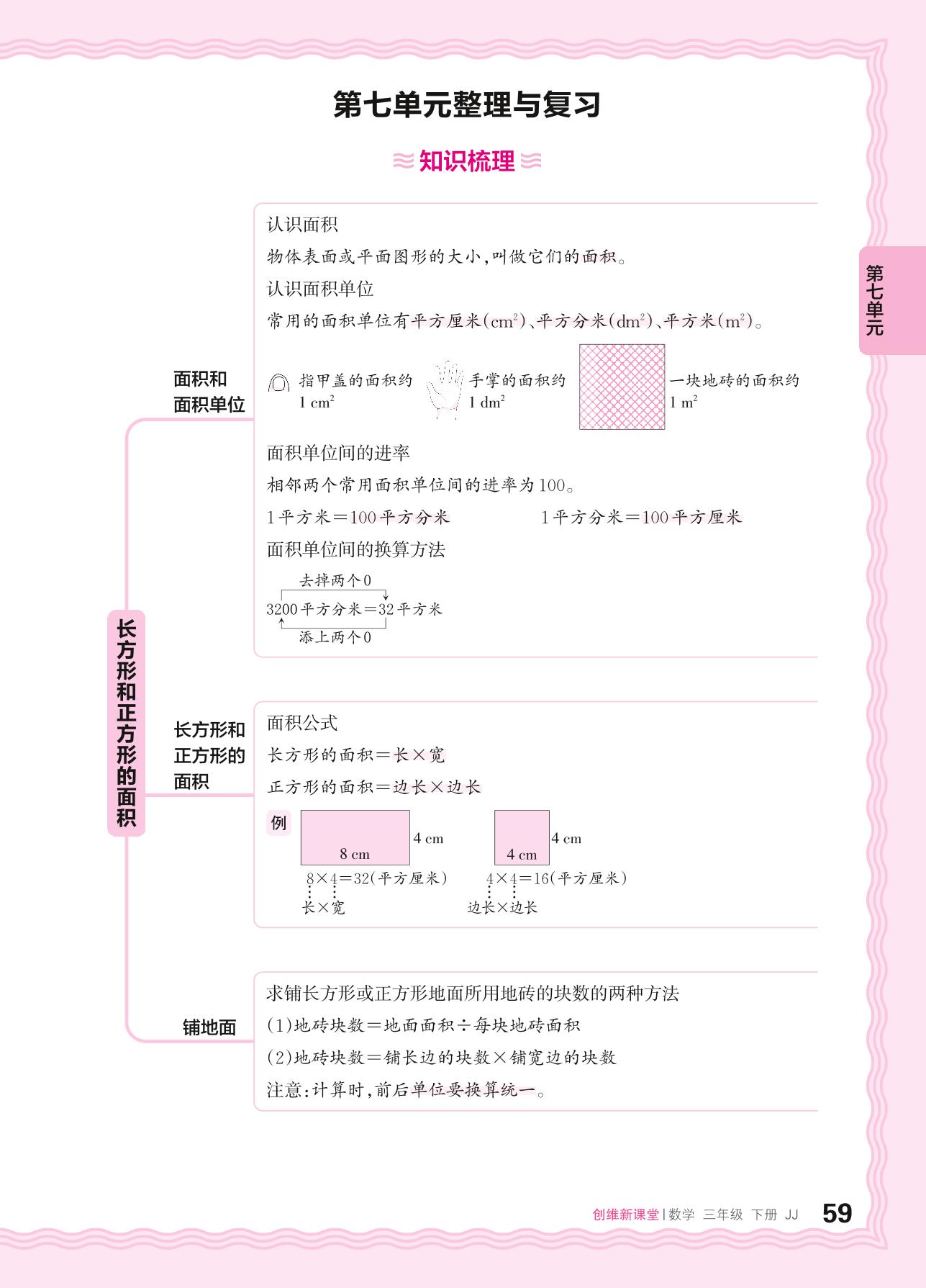 2024春下册三年级数学冀教版 第七单元整理与复习