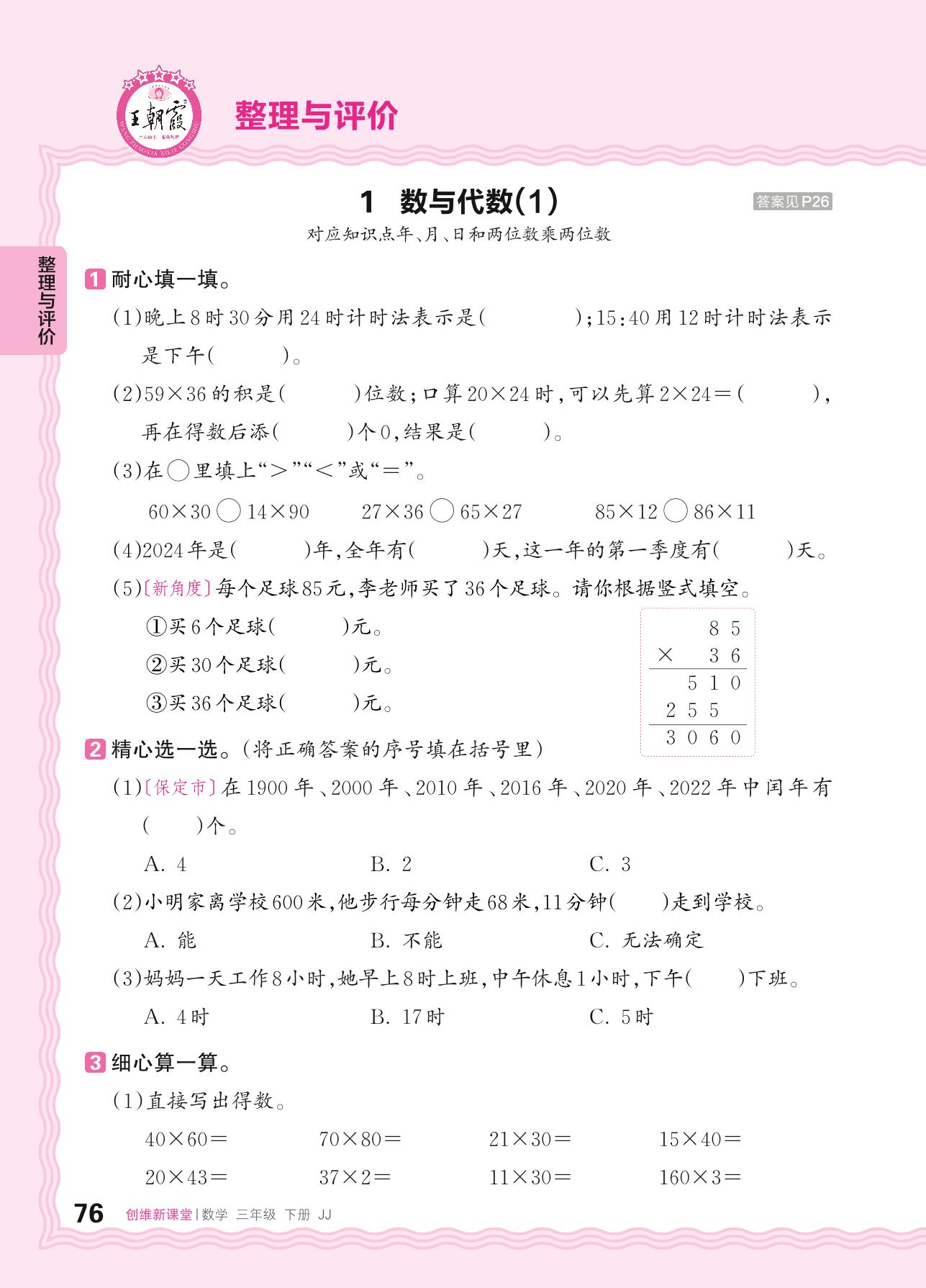 三年级数学冀教版下册课时作业