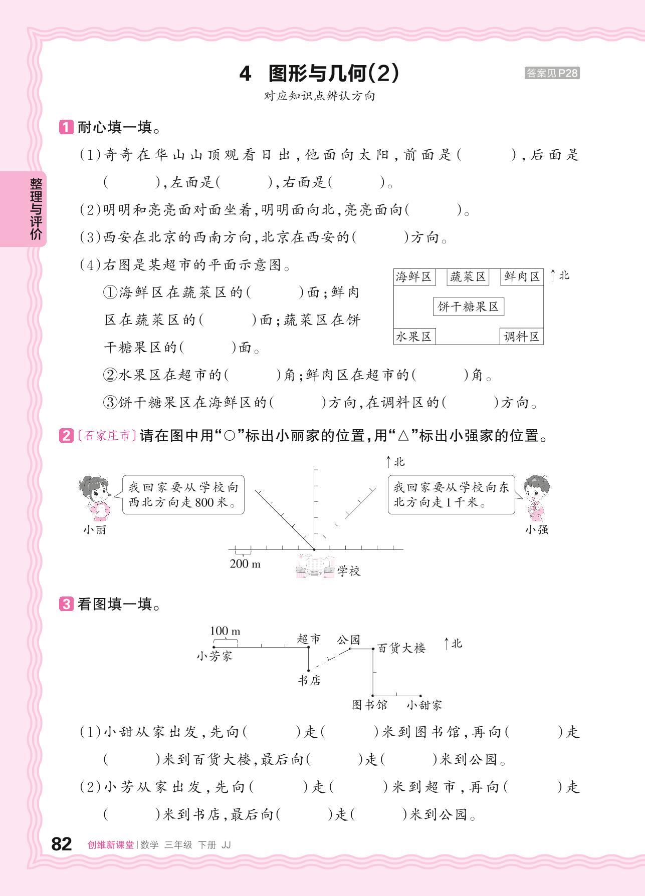 2024春下册三年级数学冀教版 整理与评价——4. 图形与几何(2)