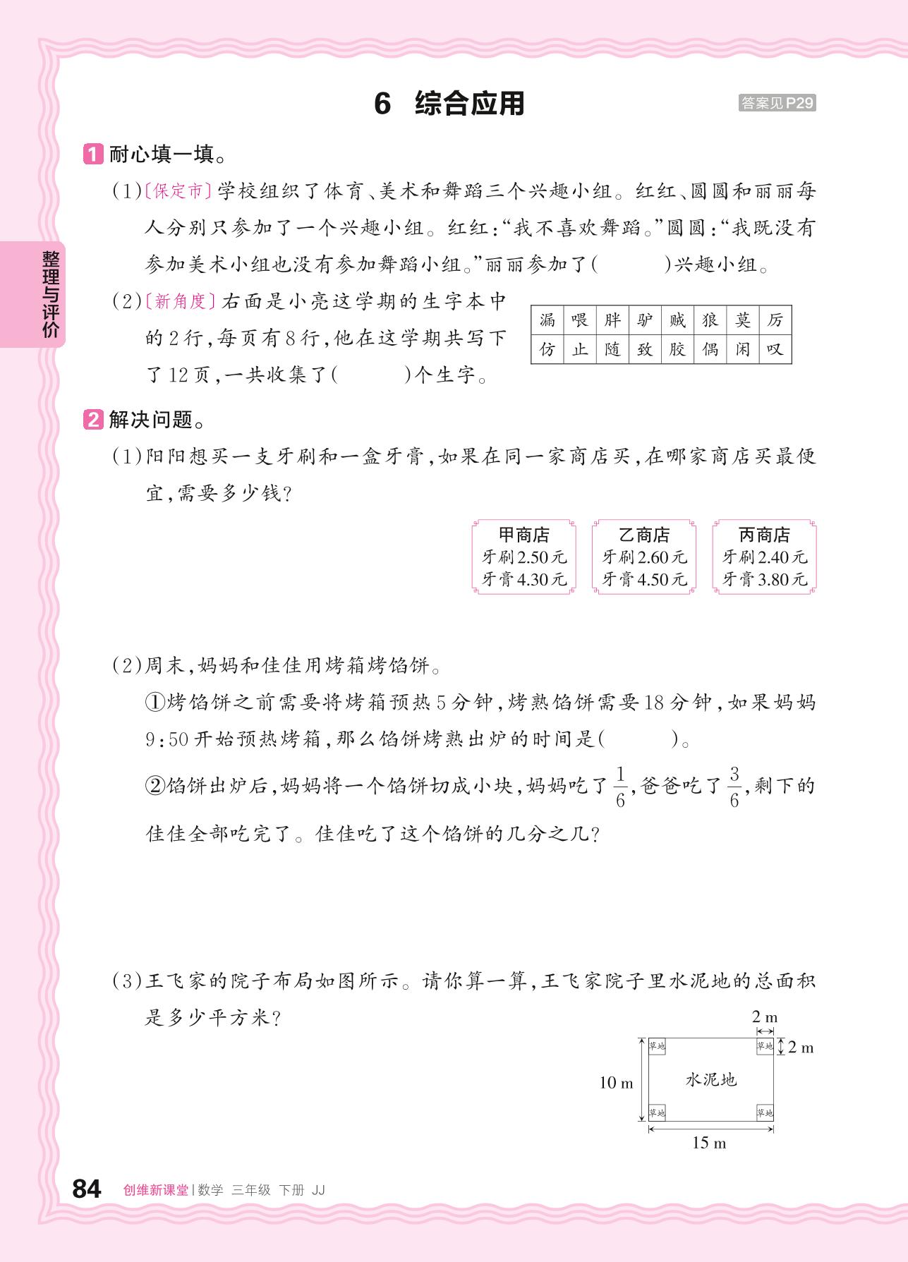 2024春下册三年级数学冀教版 整理与评价——6. 综合应用