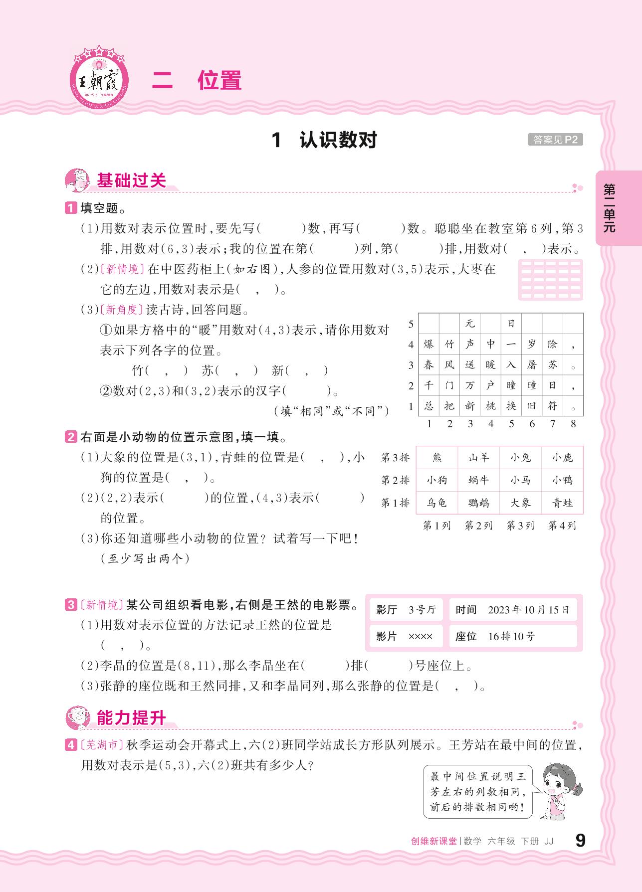 2024春下册六年级数学冀教版 第二单元 位置——1. 认识数对