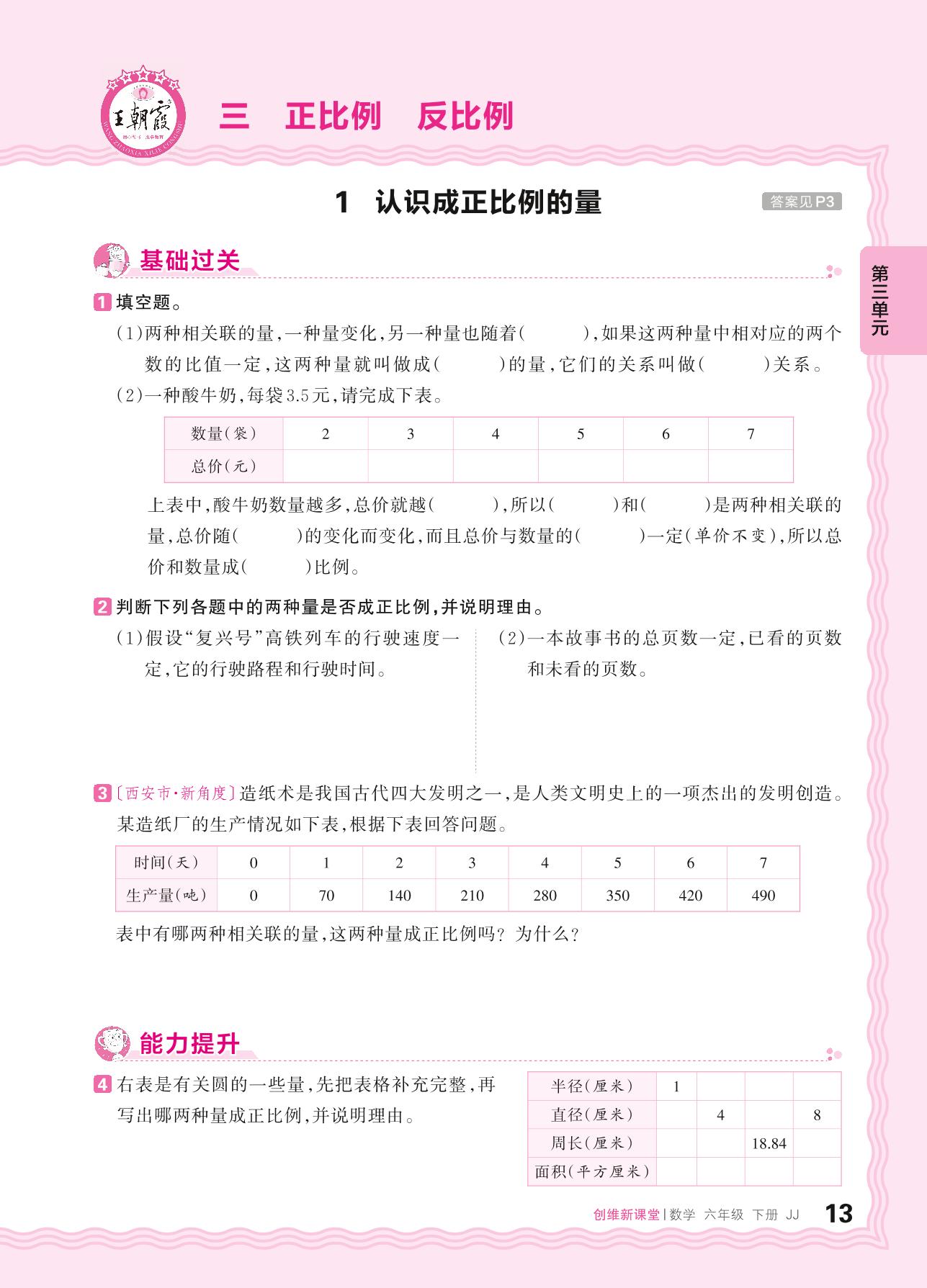 2024春下册六年级数学冀教版 第三单元 正比例 反比例——1. 认识成正比例的量