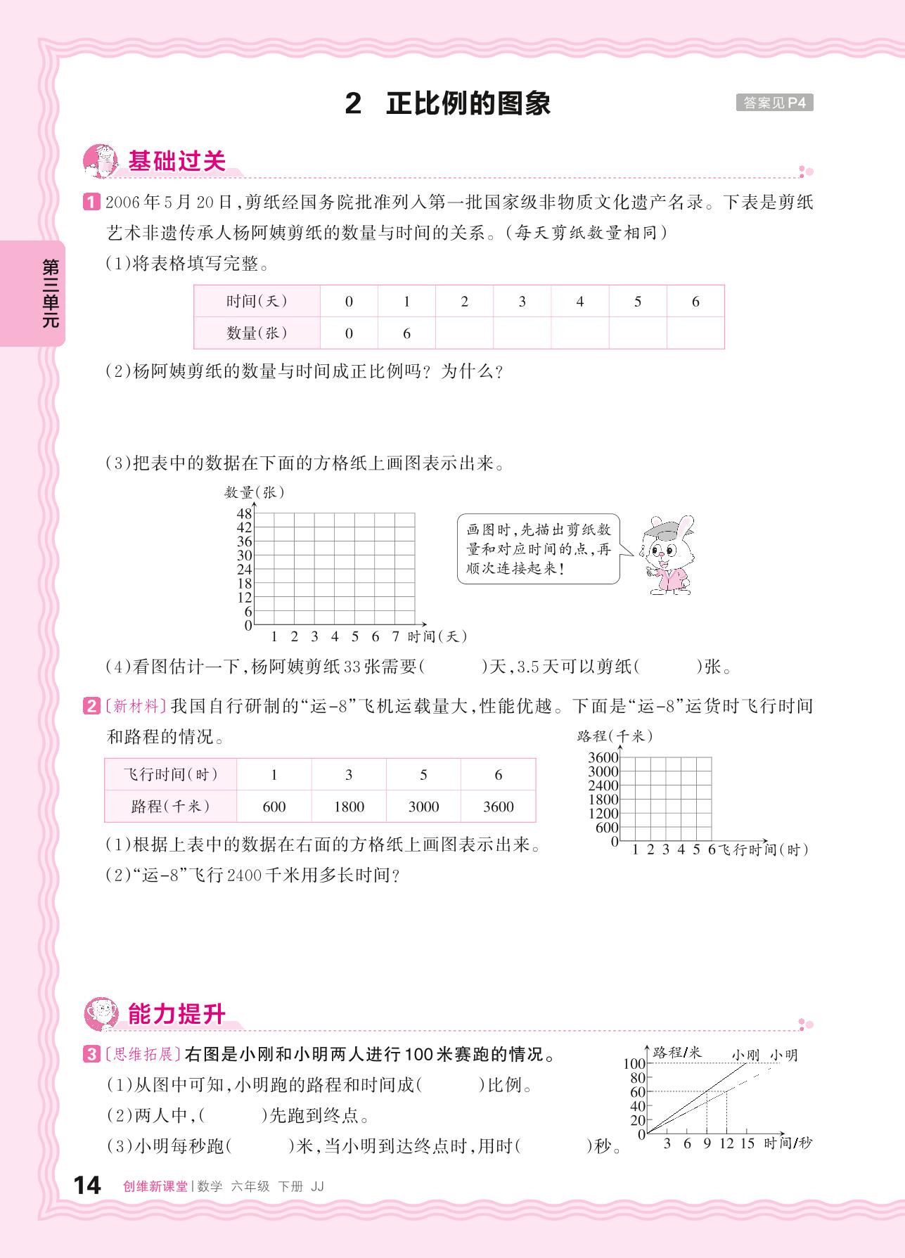 2024春下册六年级数学冀教版 第三单元 正比例 反比例——2. 正比例的图象