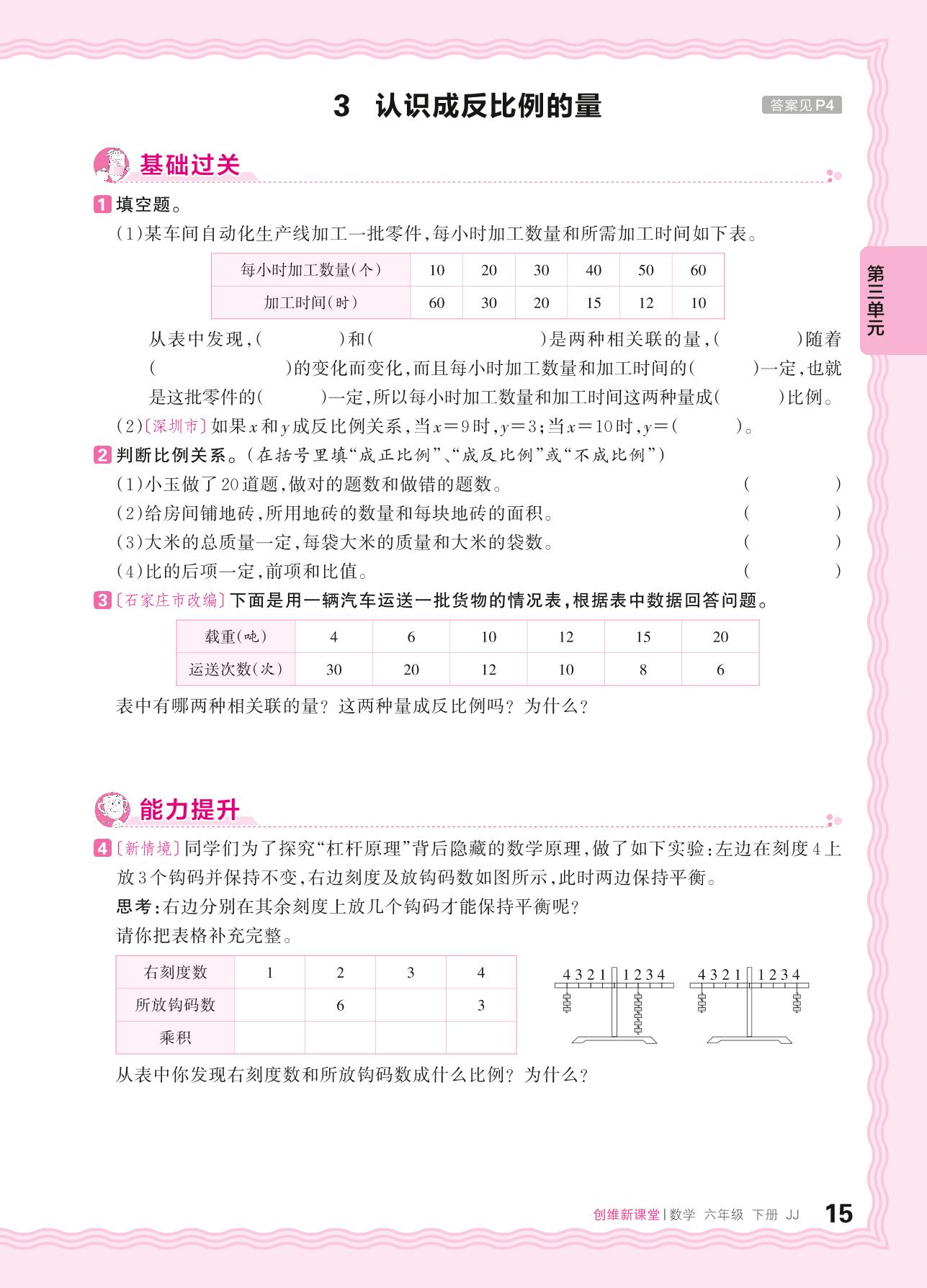 2024春下册六年级数学冀教版 第三单元 正比例 反比例——3. 认识成反比例的量