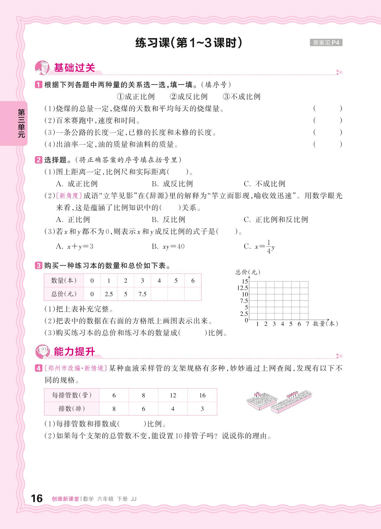 2024春下册六年级数学冀教版 第三单元正比例 反比例练习课