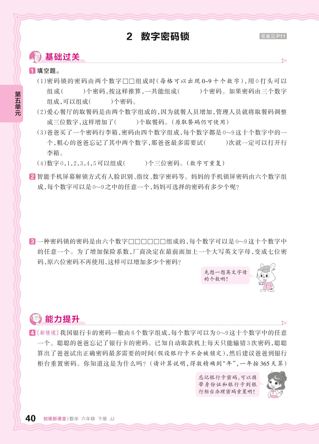 2024春下册六年级数学冀教版 第五单元 探索乐园——2. 数字密码锁