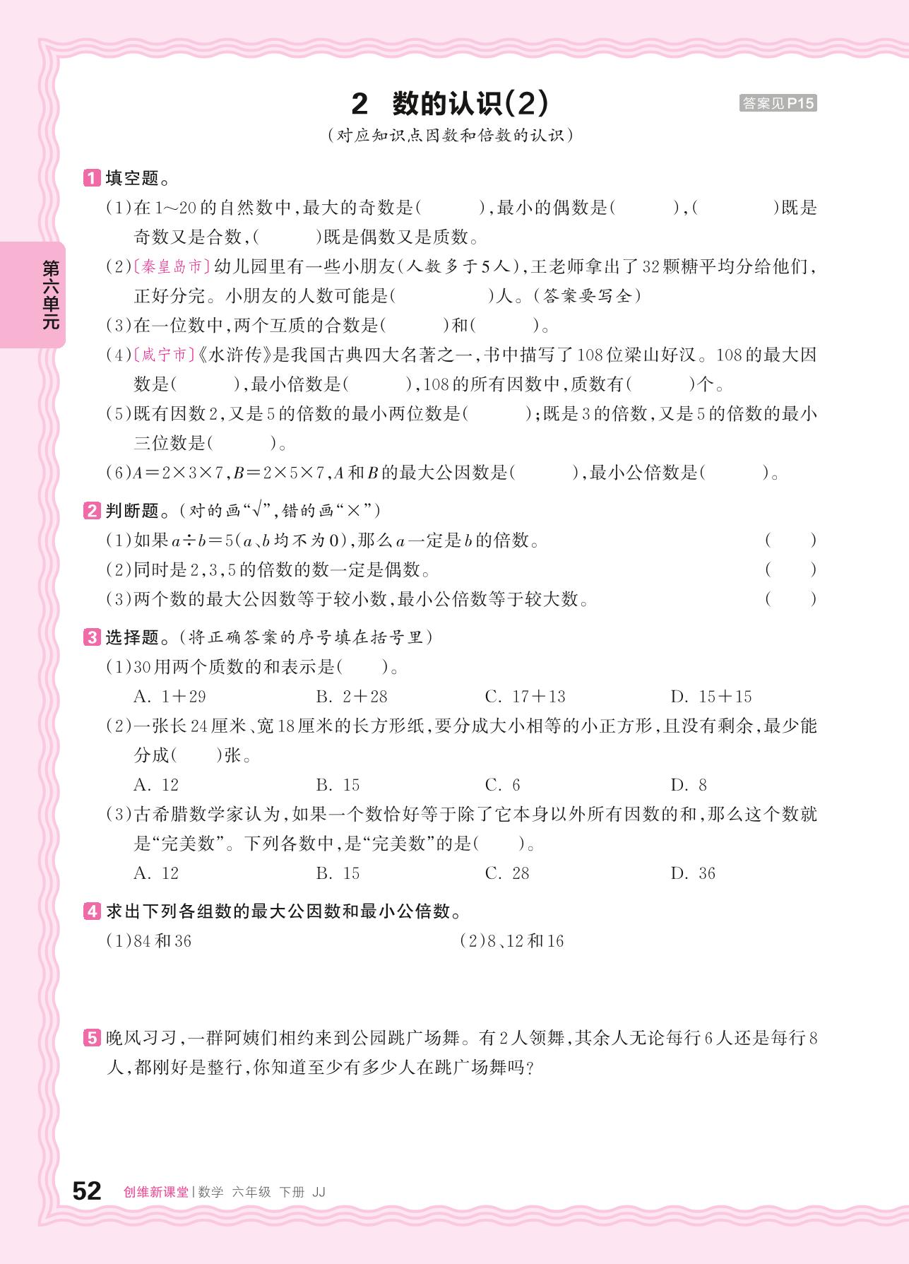 2024春下册六年级数学冀教版 第六单元 回顾与整理(数与代数)——2. 数的认识(2)
