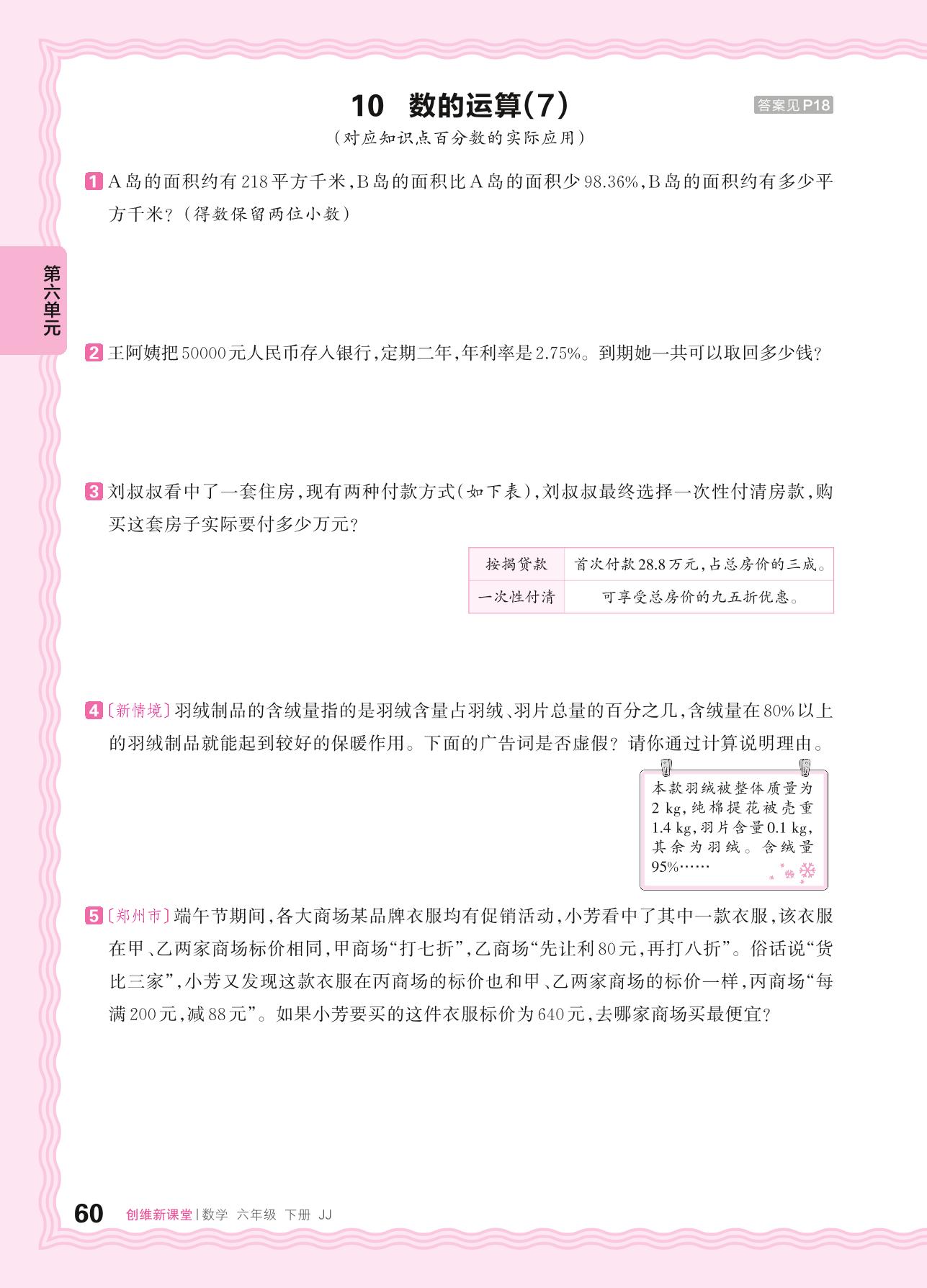 2024春下册六年级数学冀教版 第六单元 回顾与整理(数与代数)——10. 数的运算(7)