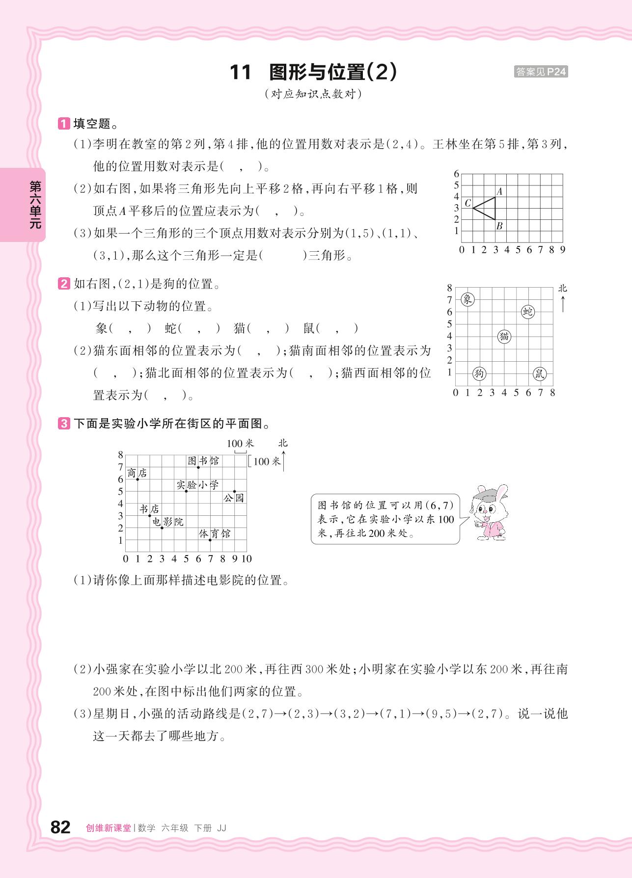 2024春下册六年级数学冀教版 第六单元 回顾与整理(图形与几何)——11. 图形与位置(2)