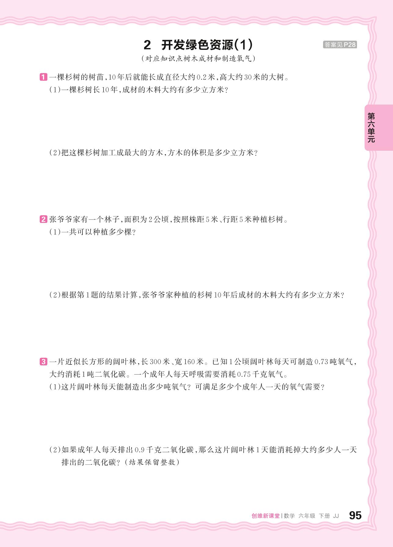 2024春下册六年级数学冀教版 第六单元 回顾与整理(综合与实践)——2. 开发绿色资源(1)
