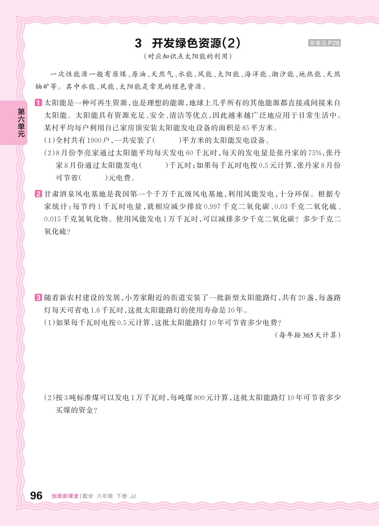 2024春下册六年级数学冀教版 第六单元 回顾与整理(综合与实践)——3. 开发绿色资源(2)