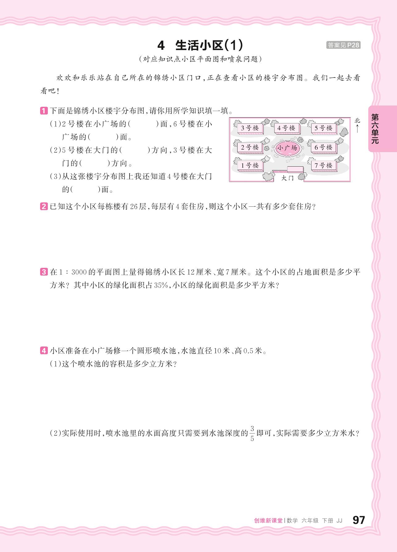 2024春下册六年级数学冀教版 第六单元 回顾与整理(综合与实践)——4. 生活小区(1)