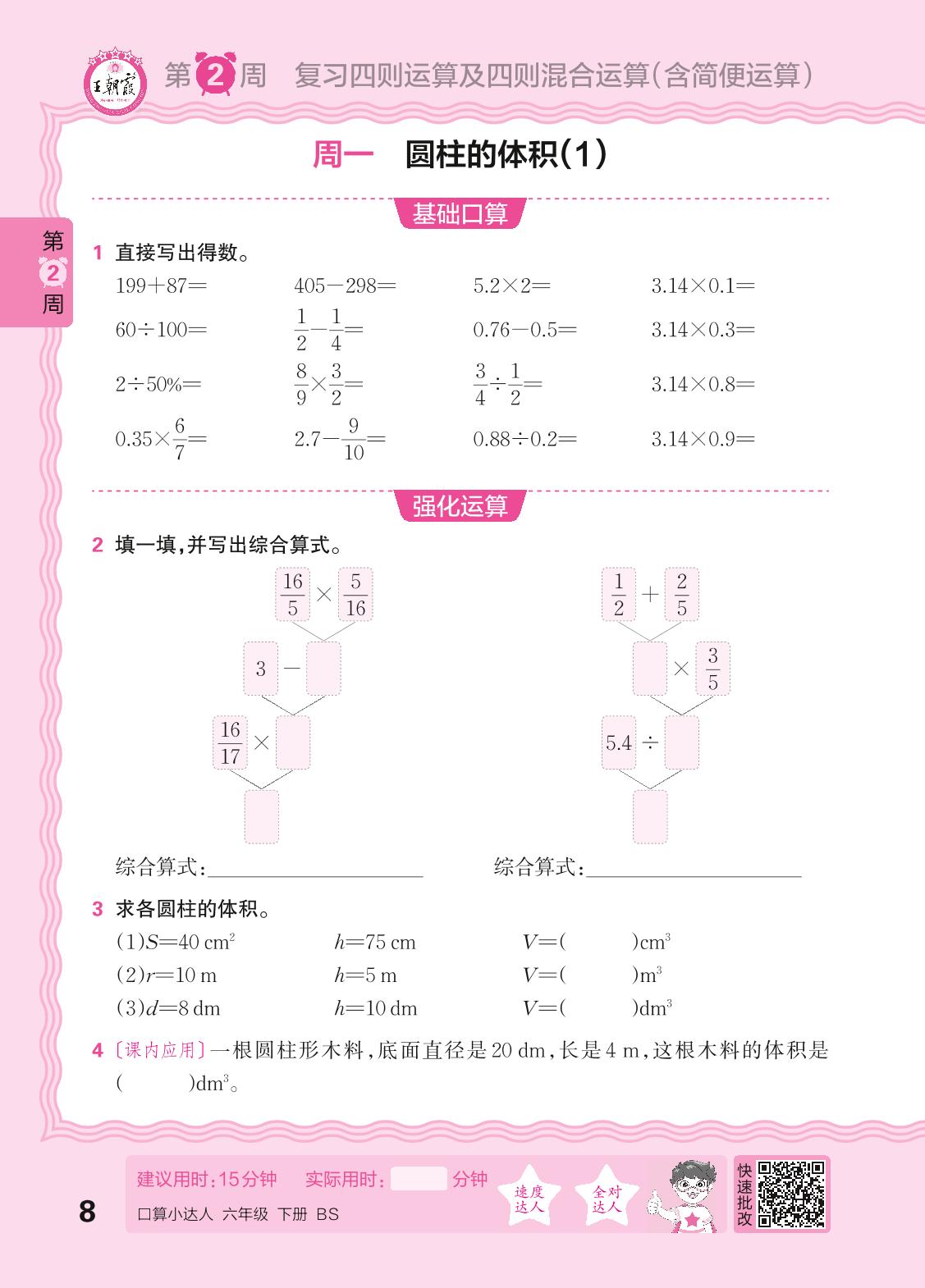 2024春下册六年级数学北师版 口算计算专练 第2周