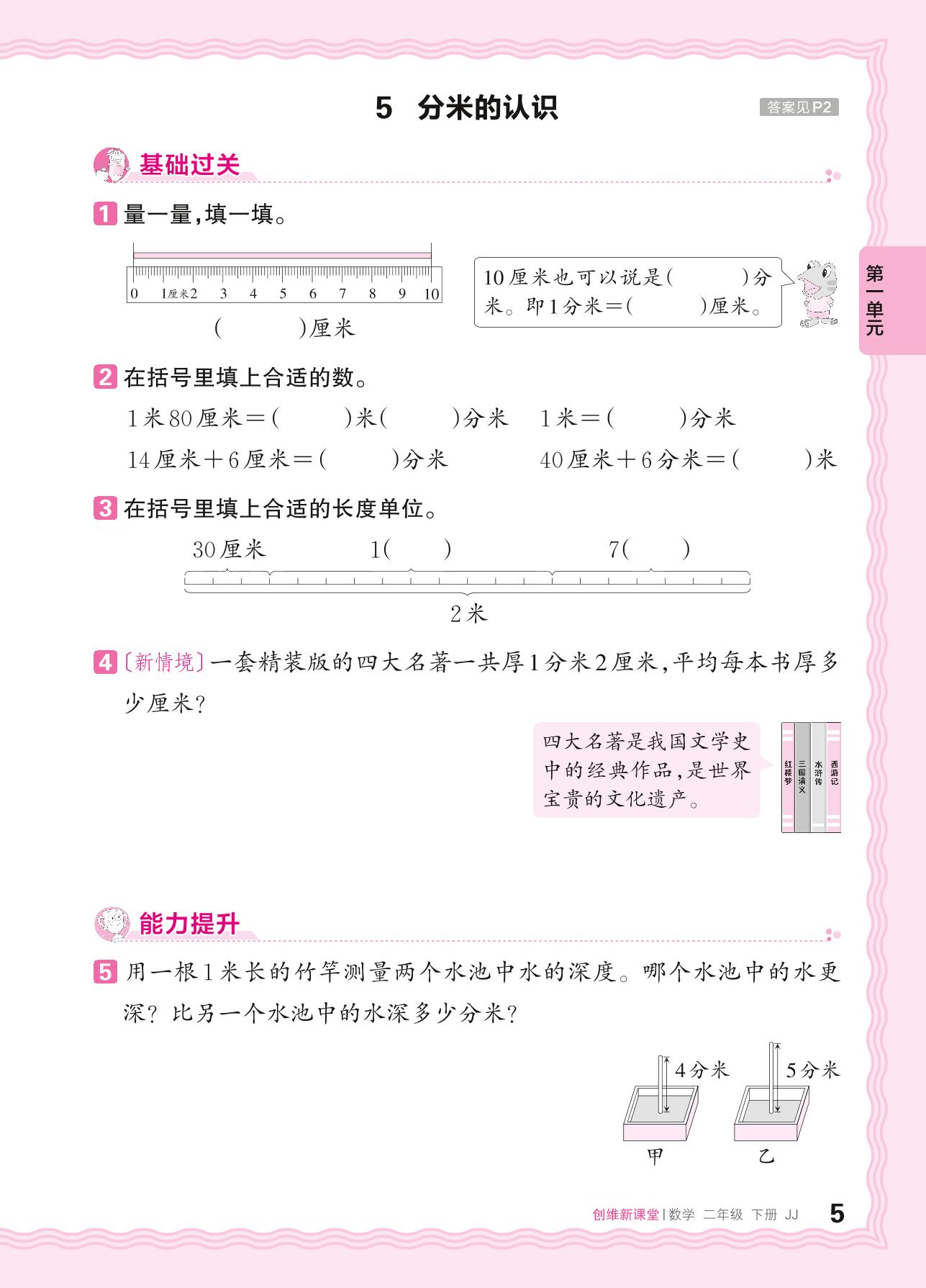 2024春下册二年级数学冀教版 第一单元 厘米、分米、米——5. 分米的认识