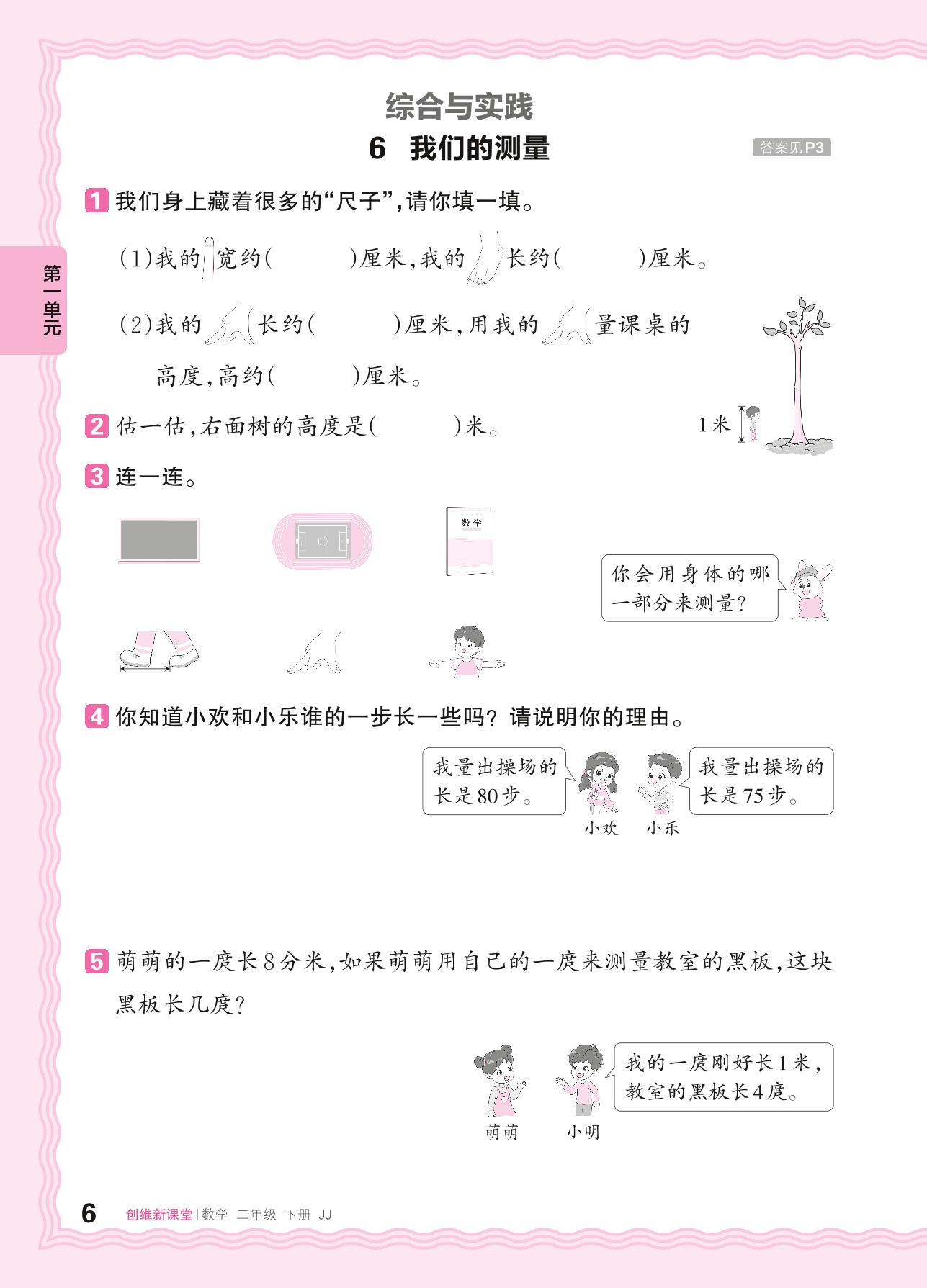 2024春下册二年级数学冀教版 第一单元 厘米、分米、米——6. 我们的测量