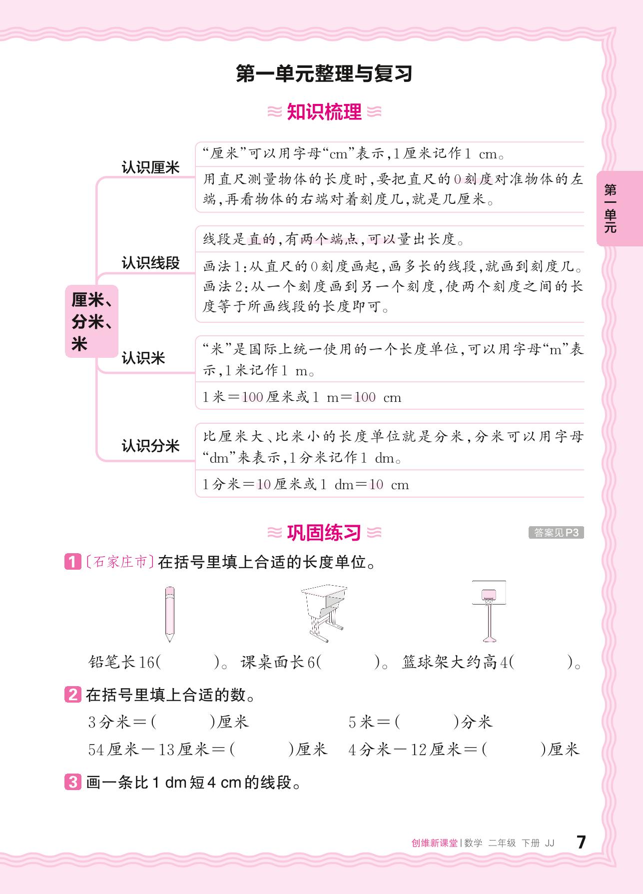 2024春下册二年级数学冀教版 第一单元整理与复习