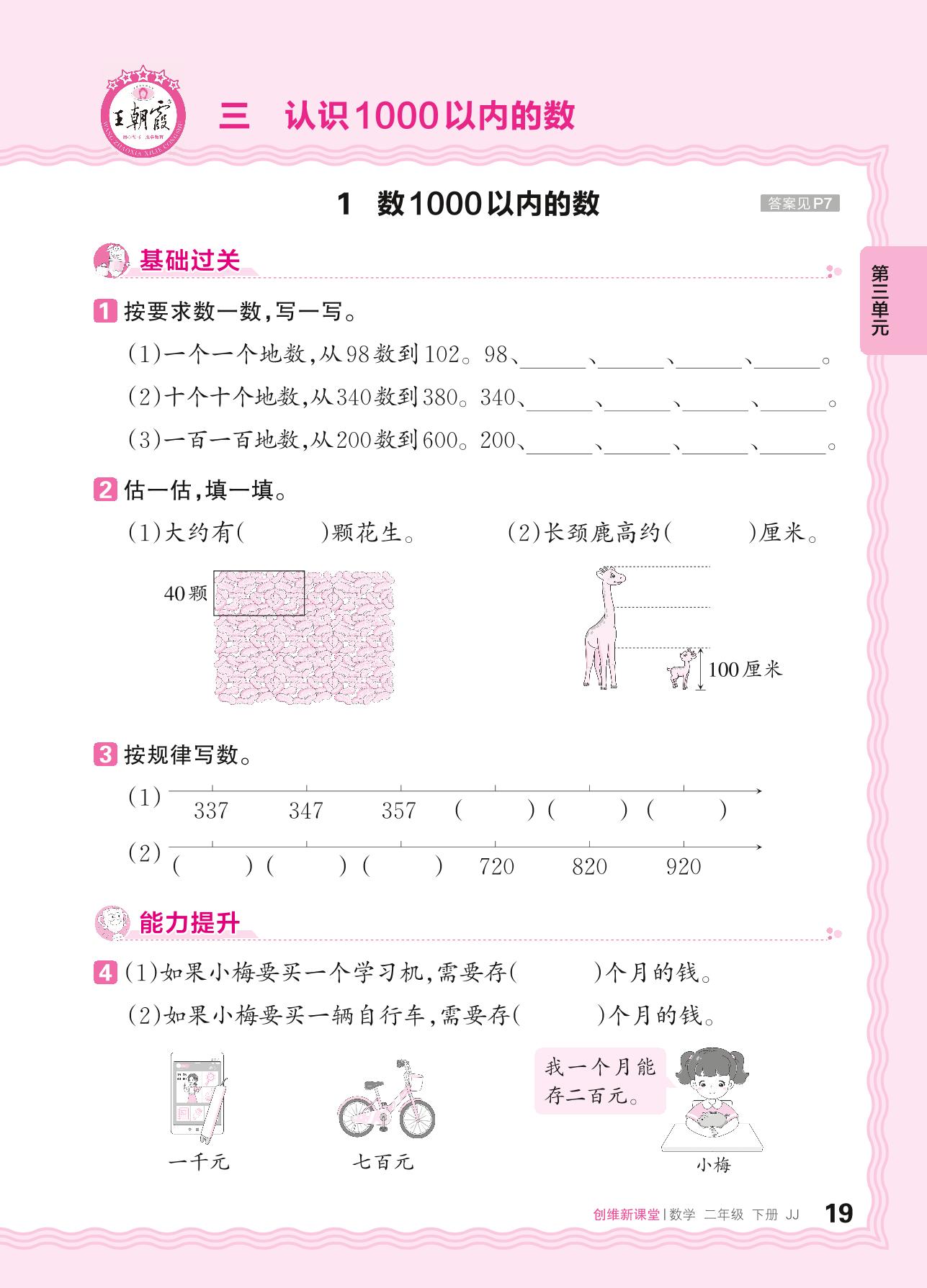 2024春下册二年级数学冀教版 第三单元 认识1000以内的数——1. 数1000以内的数