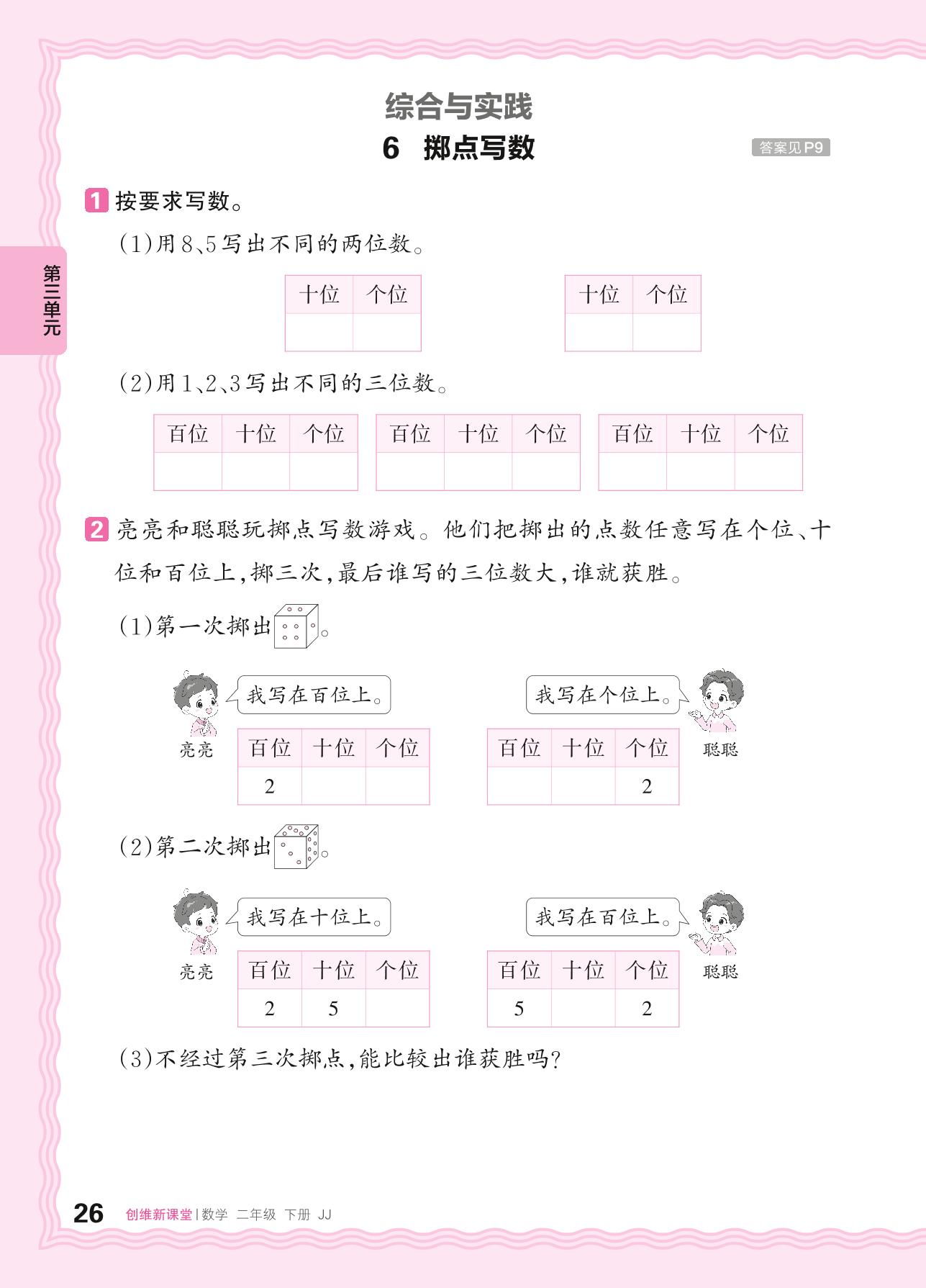 2024春下册二年级数学冀教版 第三单元 认识1000以内的数——6. 掷点写数