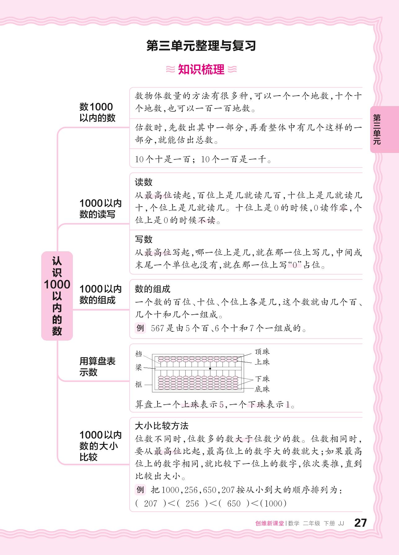2024春下册二年级数学冀教版 第三单元整理与复习