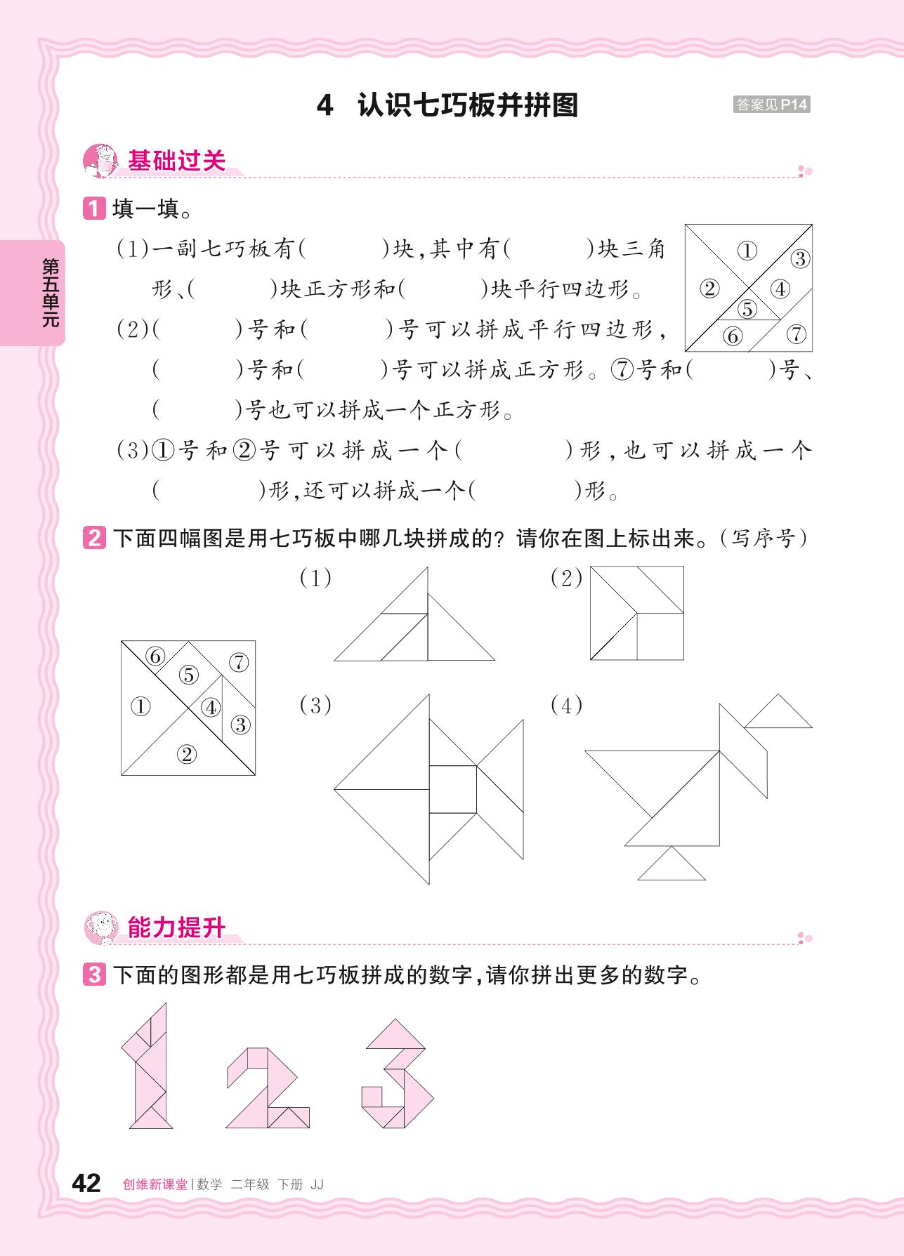 2024春下册二年级数学冀教版 第五单元 四边形的认识——4. 认识七巧板并拼图