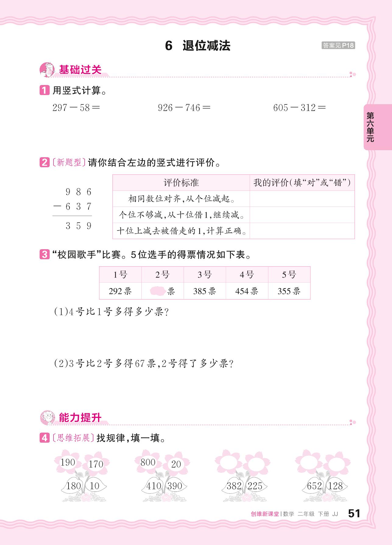 2024春下册二年级数学冀教版 第六单元 三位数加减三位数——6. 退位减法