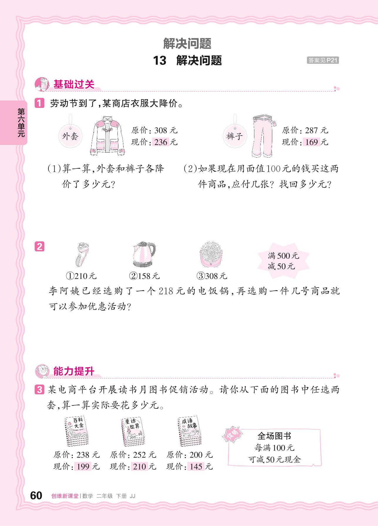 2024春下册二年级数学冀教版 第六单元 三位数加减三位数——13. 解决问题