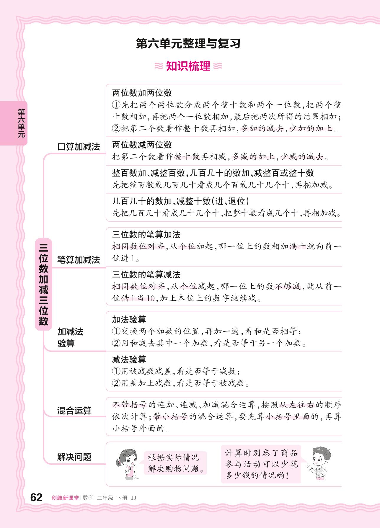 2024春下册二年级数学冀教版 第六单元整理与复习