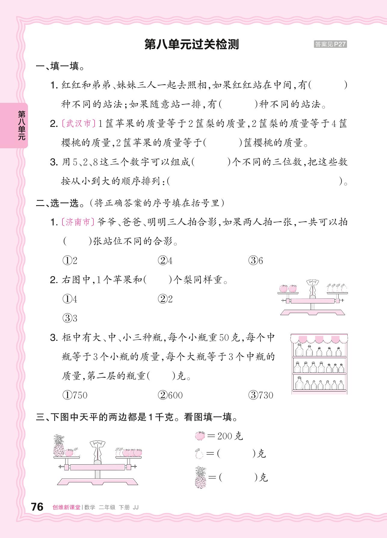 二年级数学冀教版下册单元卷