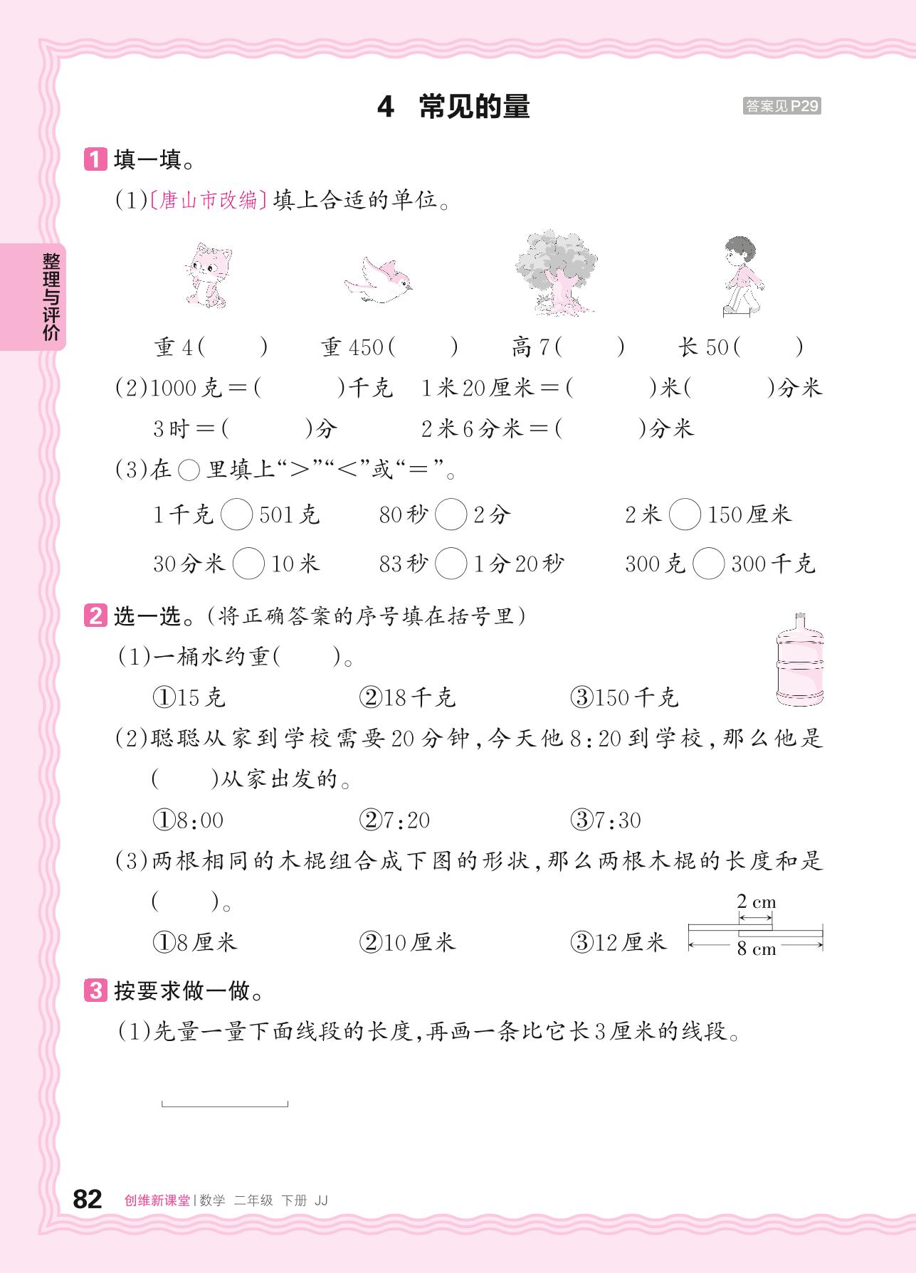 2024春下册二年级数学冀教版 整理与评价——4. 常见的量