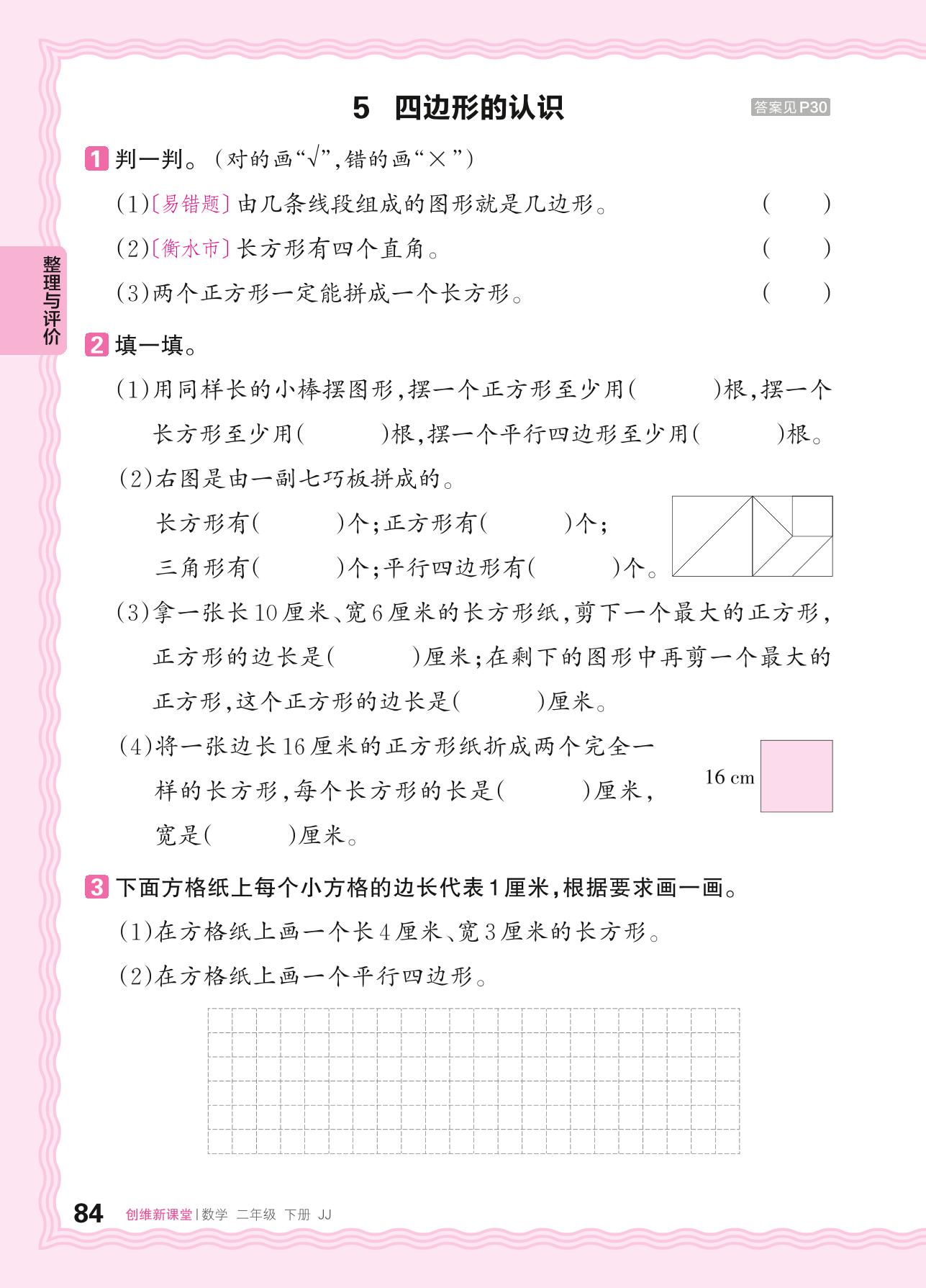 2024春下册二年级数学冀教版 整理与评价——5. 四边形的认识