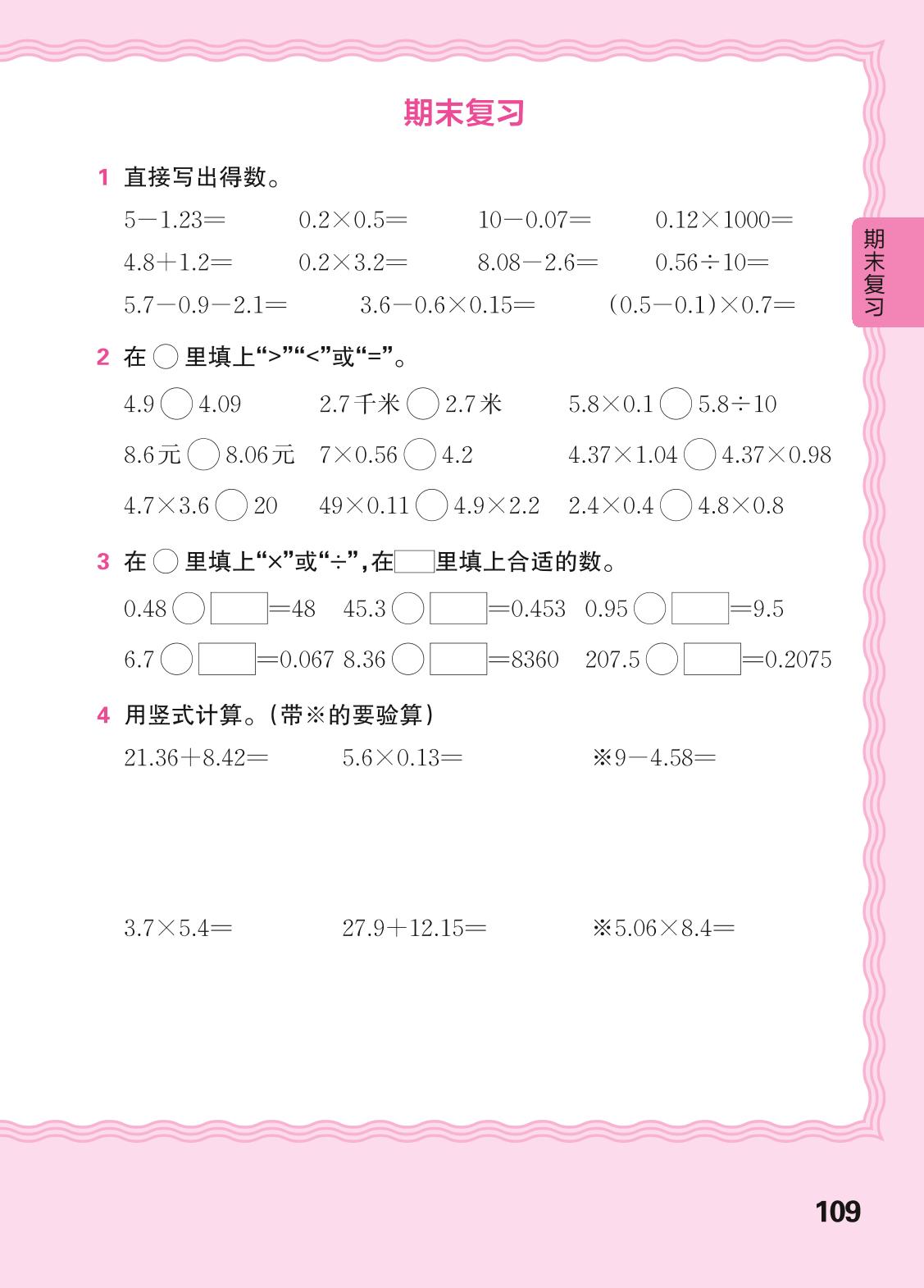 2024春下册四年级数学北师版 期末复习(计算专练)