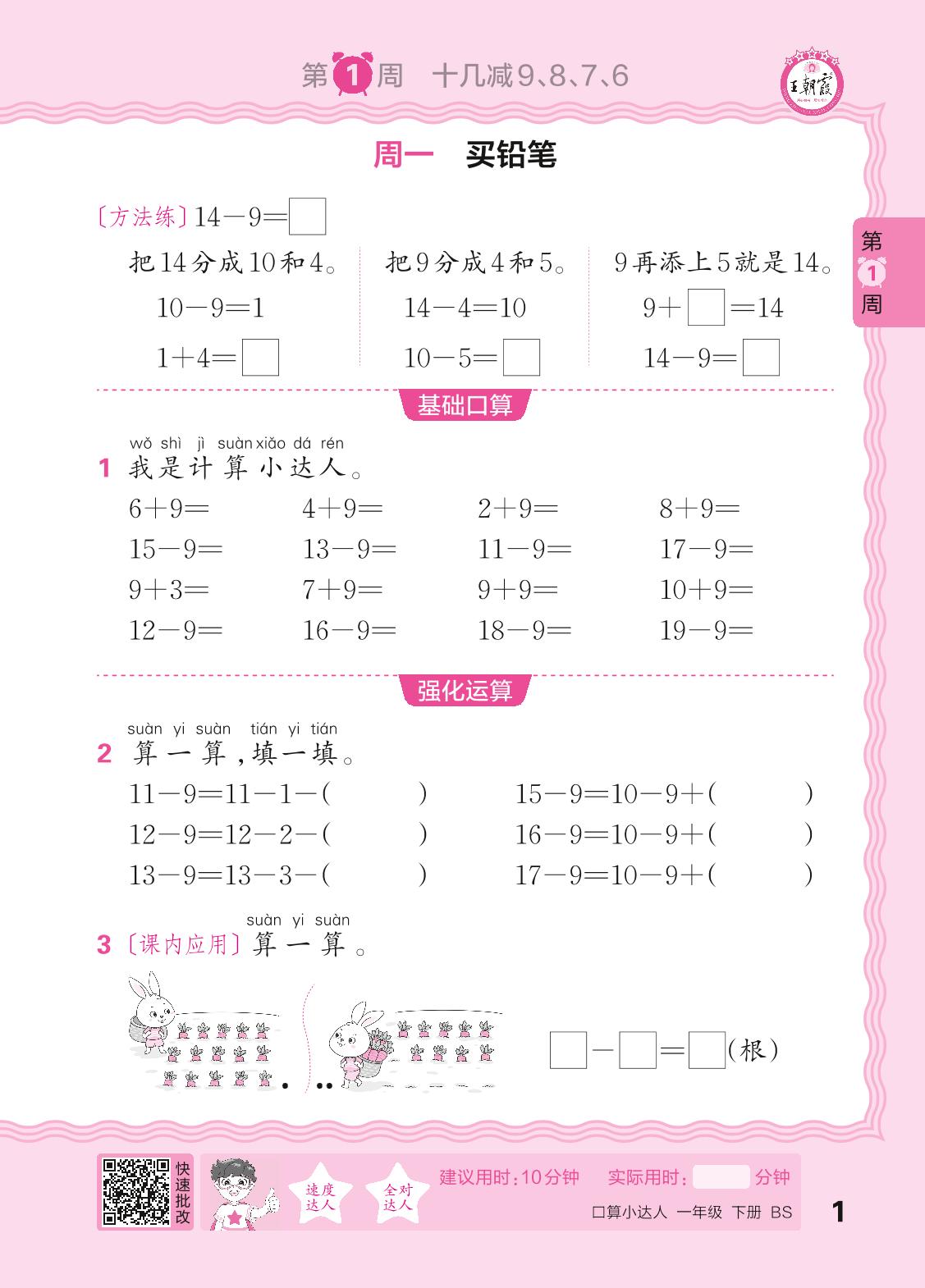 2024春下册一年级数学北师版 口算计算专练 第1周
