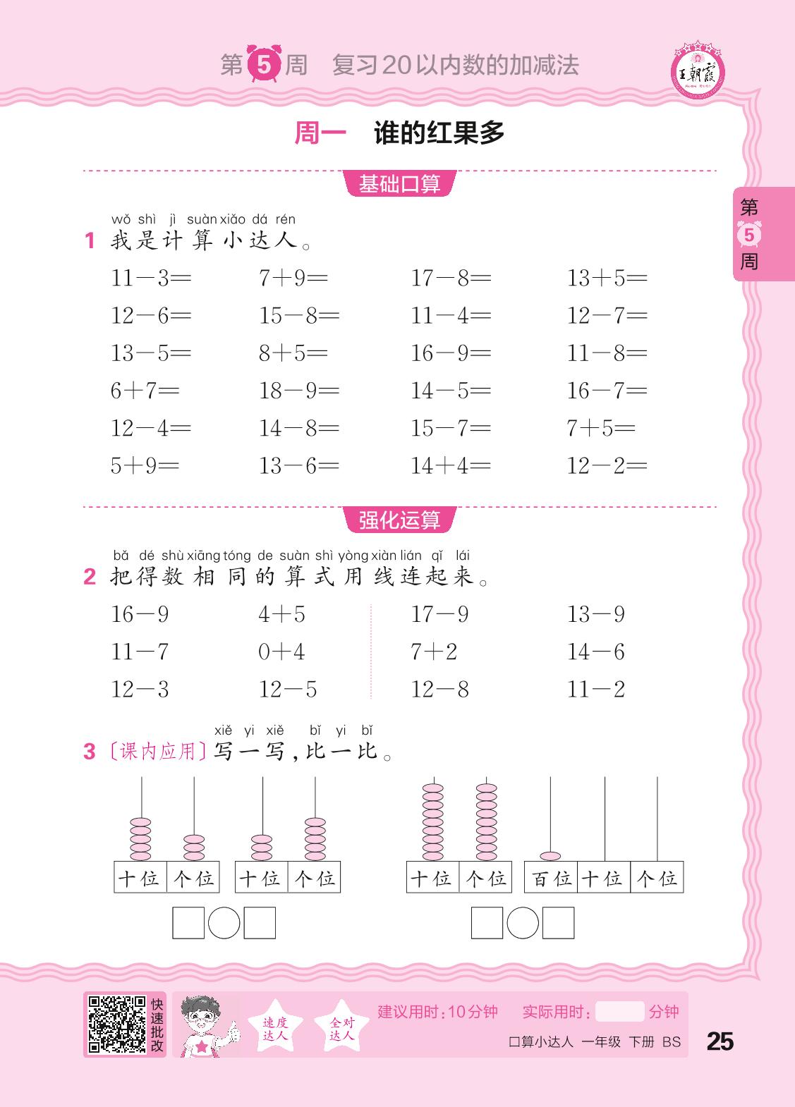 2024春下册一年级数学北师版 口算计算专练 第5周