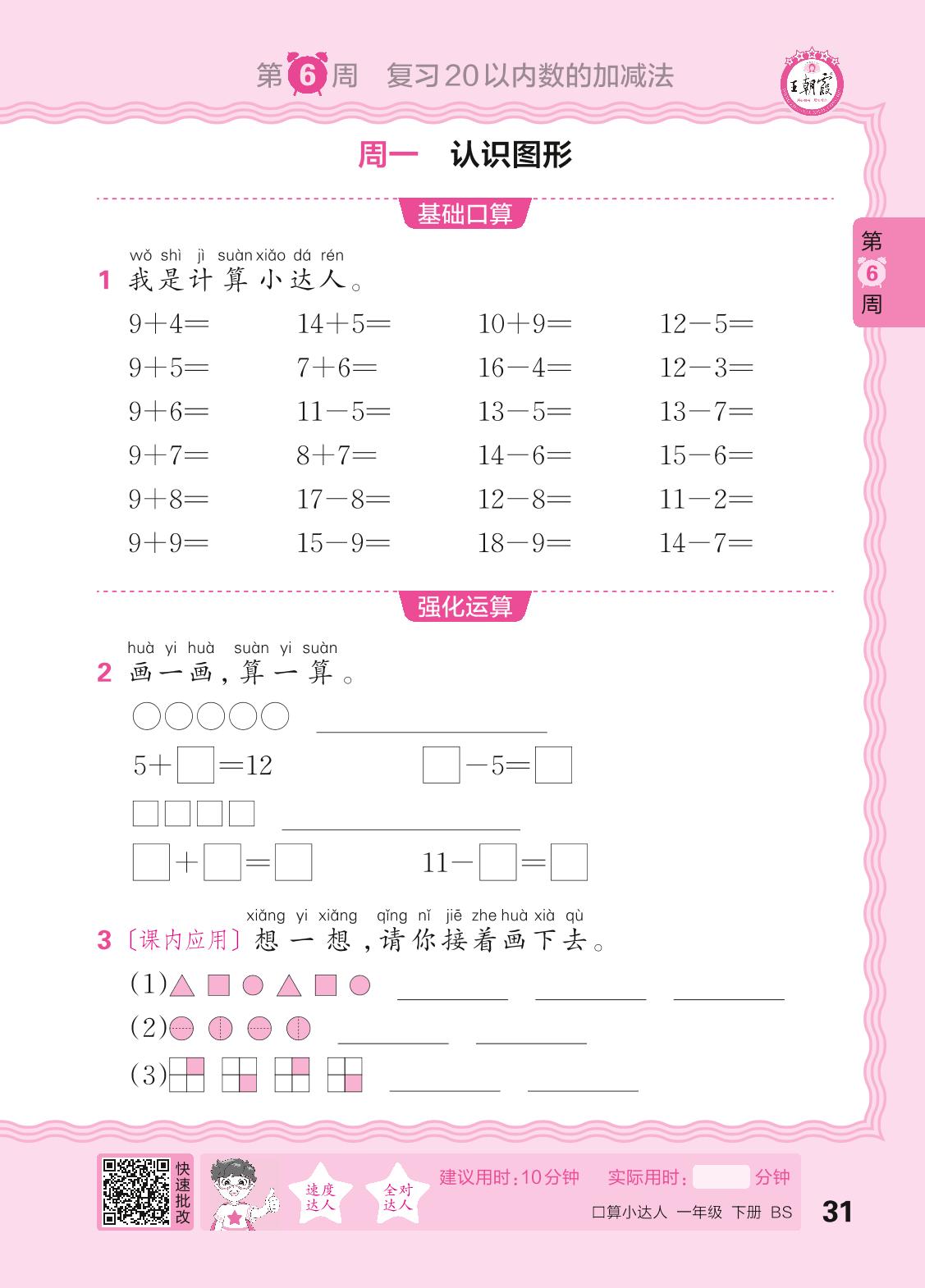 2024春下册一年级数学北师版 口算计算专练 第6周