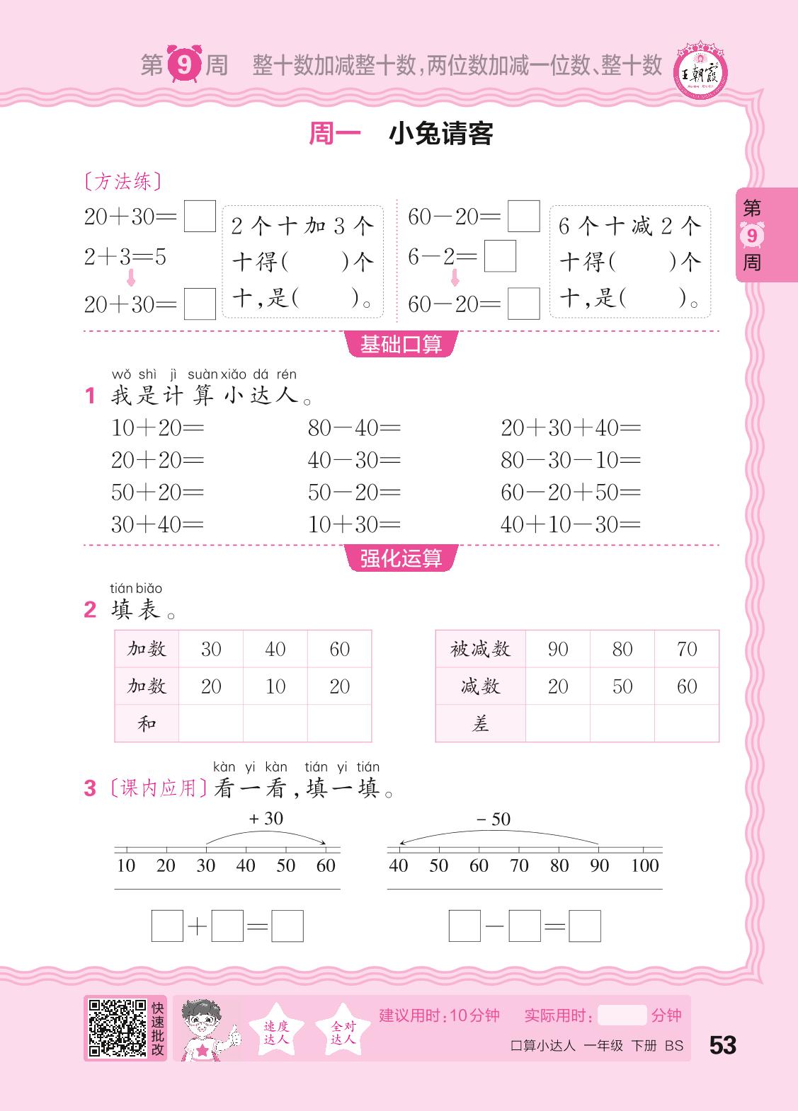 2024春下册一年级数学北师版 口算计算专练 第9周
