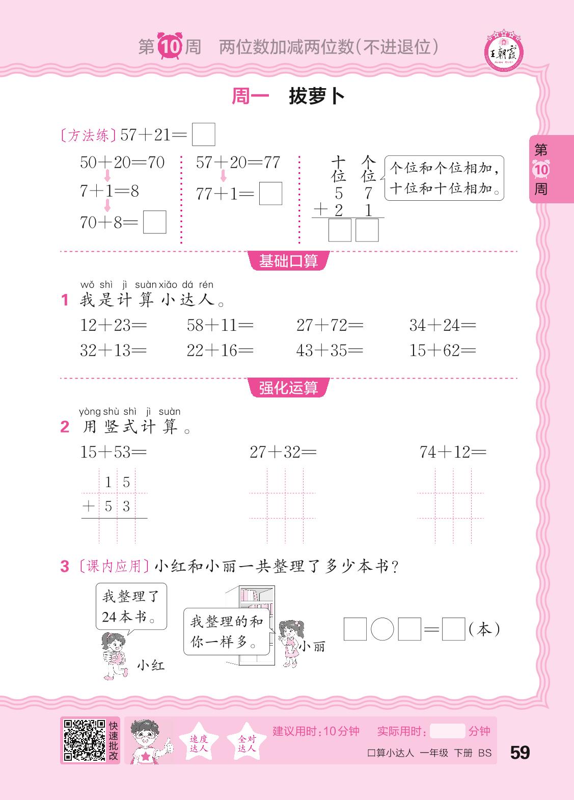 2024春下册一年级数学北师版 口算计算专练 第10周