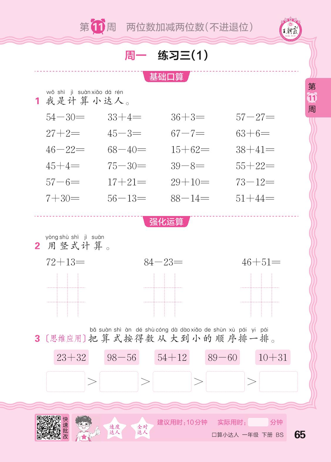 2024春下册一年级数学北师版 口算计算专练 第11周