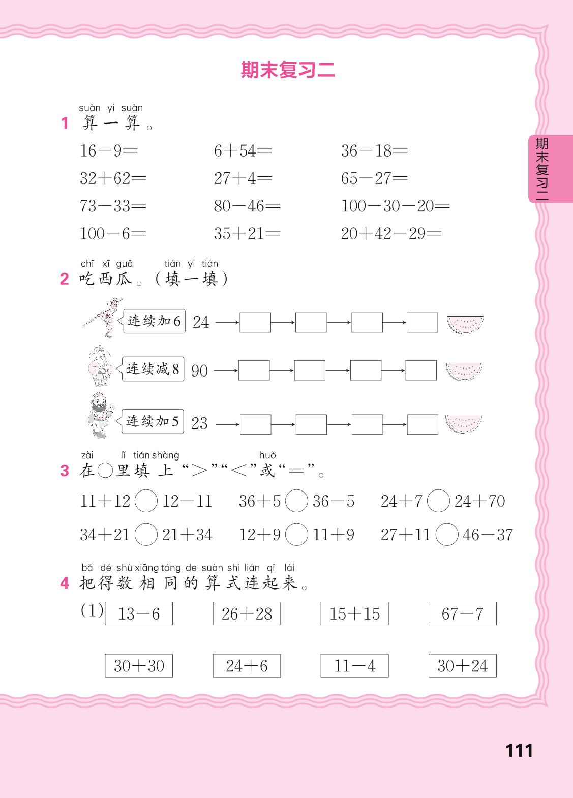 2024春下册一年级数学北师版 期末复习二(计算专练)